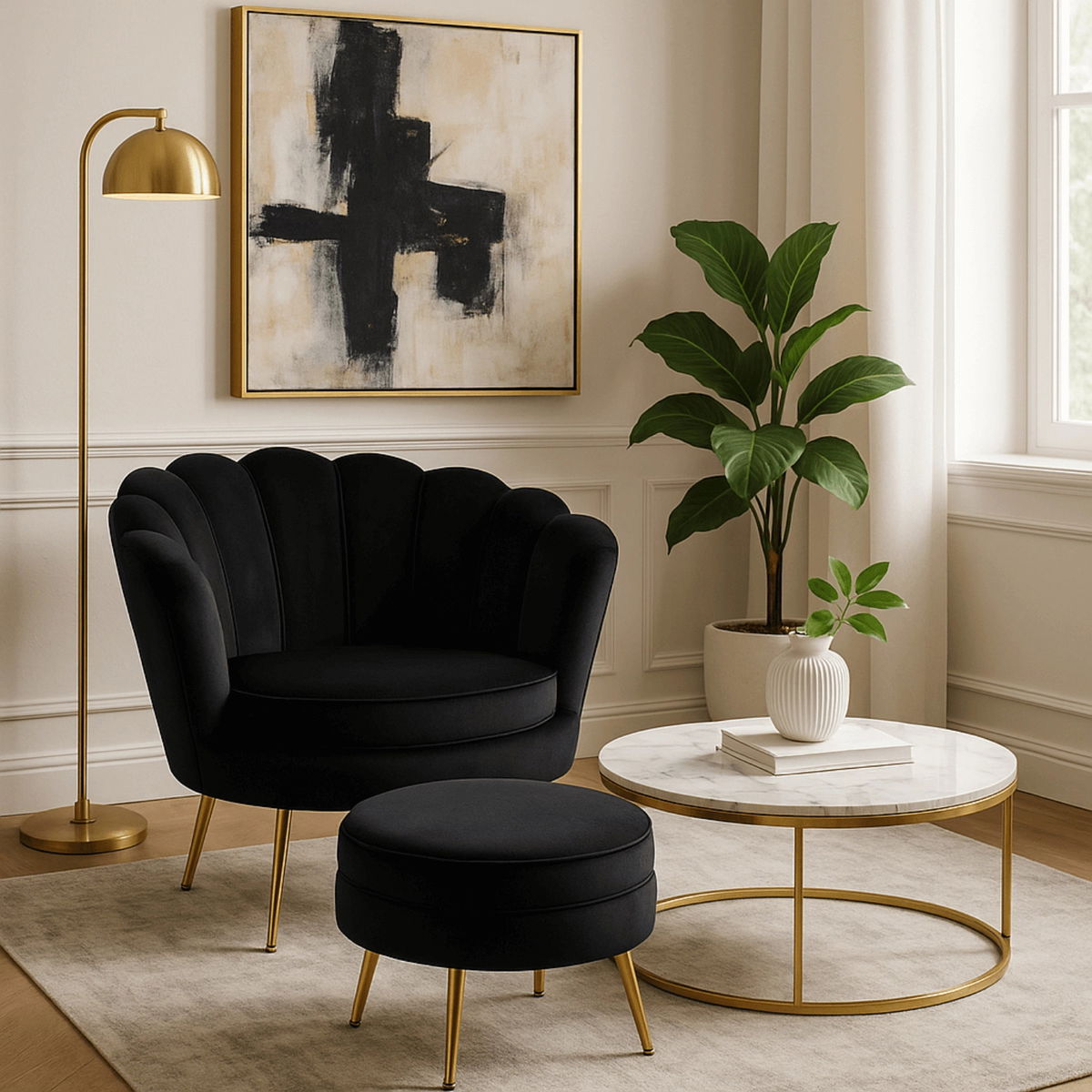 Křeslo Guarida (černá) (s taburetkou)