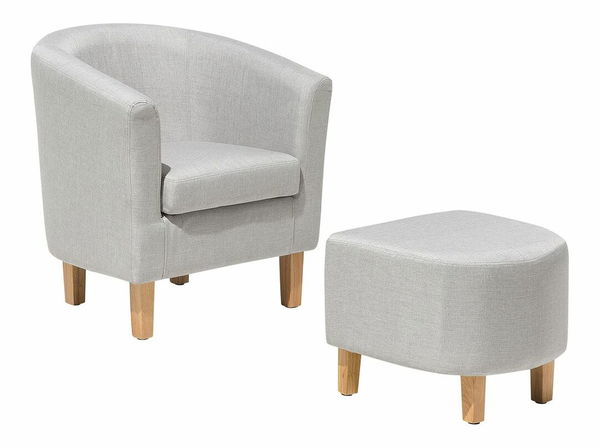 Toto kompaktní křeslo s klasickým designem se hodí do jakéhokoli moderního interiéru, ložnice, domácí pracovny nebo obývacího pokoje a přináší pohodlí a nadčasový styl. Zaoblený tvar křesla zvýrazňuje šedé látkové čalounění a hrubě vyztužené sedátko. Díky podnožce ve stejném provedení je ideální k relaxaci s vyloženýma nohama.