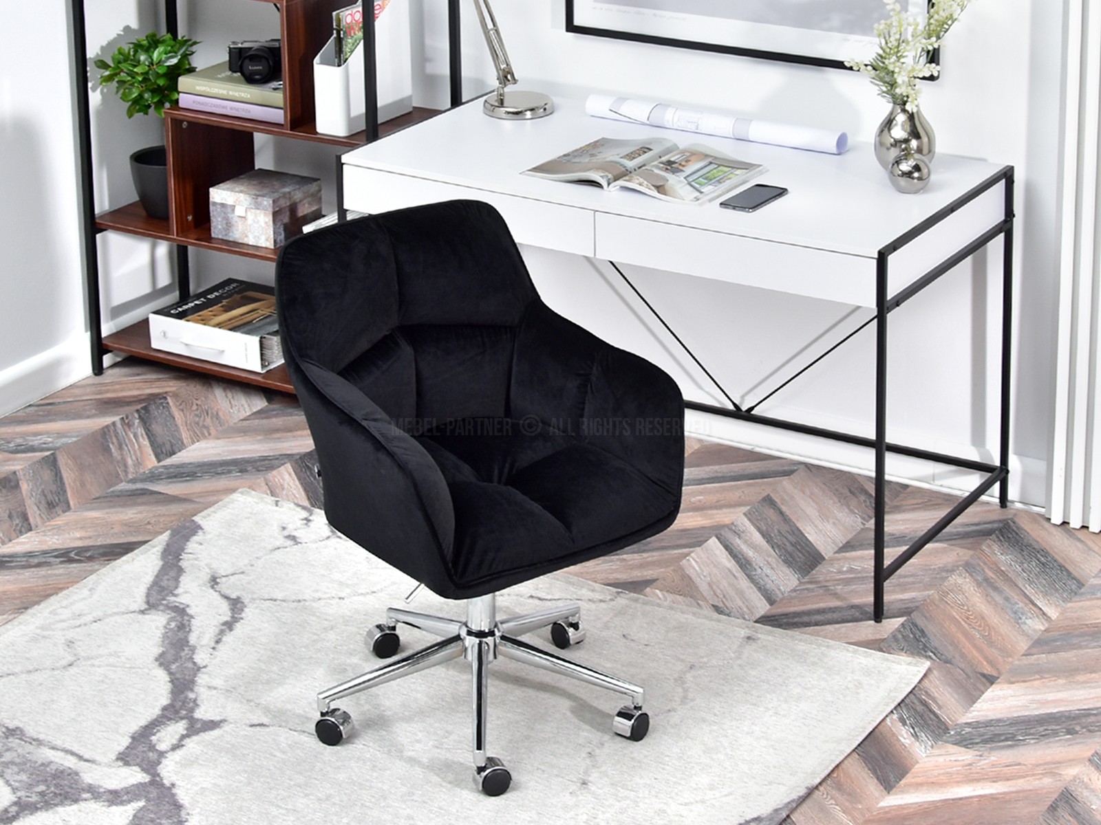 otočné sedátko, centrální základna s kolečky, područky ano, nastavitelná Výška
