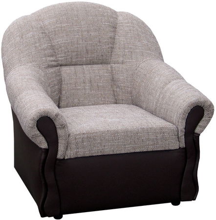 Mohutné křeslo čalouněné kvalitním šenilem a koženkou je vhodné jako doplněk k rohové sedačce Korsa.