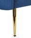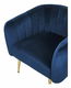 Vsaďte na luxus, pohodlí a eleganci a udělejte na své hosty dojem. Sametové čalounění v sytém odstínu modré upoutá pohledy zejména svým okouzlujícím vzhledem a hladkou texturou. Kombinace moderního tvaru a elegantních kovových nohou ve zlatém barevném provedení působí velmi honosně a příjemně. Z tohoto křesla se stane vaše oblíbené místo, kde si budete moci pohodlně číst, povídat si nebo relaxovat.