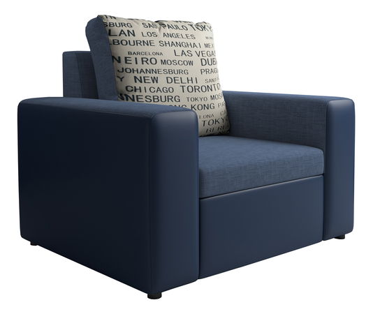 Křeslo Lavenda (modré) o výšce 89 cm a hloubce 83 cm je ideálním doplňkem pro moderní i klasický obývací pokoj. Křeslo má atraktivní vzhled se dvěma barevnými kombinacemi a velkým polštářem s nápisy. Sedák je vyplněn vlněnou pružinou a výška sezení je 40 cm. Hloubka sezení s polštářem je 53 cm a bez polštářů je 65 cm. Výška křesla po opěrky dosahuje 57 cm a bez polštáře je 78 cm. Křeslo má plastové nožičky a je čalouněno tkaninou Sawana, která je lehká a odolná s jemnou strukturou a vysokou odolností. Tento materiál se skvěle hodí pro čalounění pohovek a postelí. Polštář je čalouněný tkaninou Dolaro, která je ekologickou kůží vyrobenou na bázi PES s klasickou texturou připomínající pravou kůži. Křeslo Lavenda (modré) je baleno v jednom velkém balíku o rozměrech 69x108x79 cm a váze 43 kg.