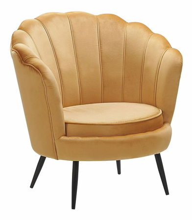 Ideální volba pro ty, kdo chtějí dodat svému interiéru šmrnc. Toto stylové křeslo v moderním tvaru má krásné čalounění z jemného sametu a svým designem se zaobleným opěradlem zlepší vzhled celé místnosti a vnese do ní eleganci. K vyšší úrovni odolnosti a stability konstrukce přispívají černé kovové nohy.