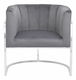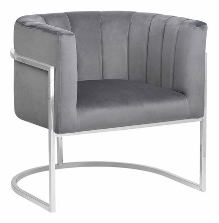 Toto designové křeslo s čistými liniemi navržené v jednoduchém stylu skvěle doplní vintage nebo moderní interiér. Křeslo má nízké prošívané opěradlo a je čalouněno na dotek jemnou sametovou látkou v klasické šedé barvě, která se snadno udržuje. Díky pevným kovovým nohám v klasickém stříbrném provedení je stabilní a zároveň stylové. Design křesla se nese ve znamení elegantního glamour stylu Hollywoodu.