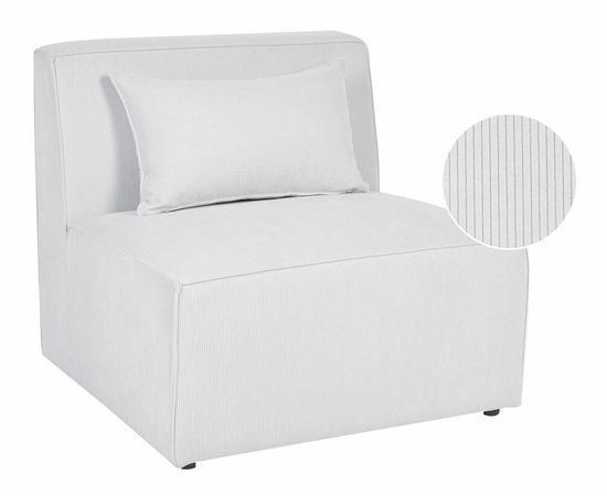 Vytvořte si stylový obývací pokoj s touto moderní částí k sezení pro jednu osobu. Manšestrové čalounění je měkké na dotek a vyznačuje se nápadnou vroubkovanou texturou, díky které vypadá elegantně. Stabilitu nábytku zaručují nohy vyrobené ze syntetického materiálu. Tento modul můžete zkombinovat s jinými moduly ze stejné kolekce a vytvořit pohovku, která bude odpovídat vašim představám.