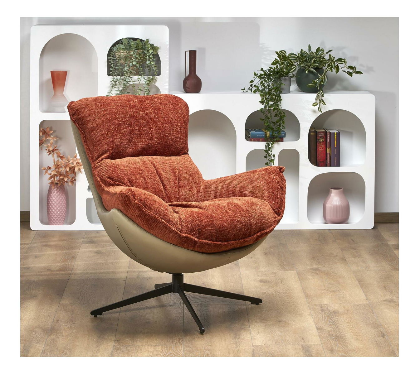 ZobrazitToto otočné relaxační křeslo spojuje funkčnost s moderním designem. Je podepřeno ocelovými nožičkami, které jsou práškově lakovány, čímž zabezpečují odolnost a estetický vzhled. Čalounění je kombinací tradiční tkaniny a ekokůže, což přináší příjemný vizuální kontrast a zároveň zvyšuje odolnost křesla. Nosnost křesla je do 120 kg a výška sedáku 55 cm, což zaručuje pohodlí i pro vyšší postavy. Ideální křeslo pro každého, kdo hledá elegantní a pohodlné sezení s možností otáčení, vhodné do obývacího pokoje nebo pracovní zóny.