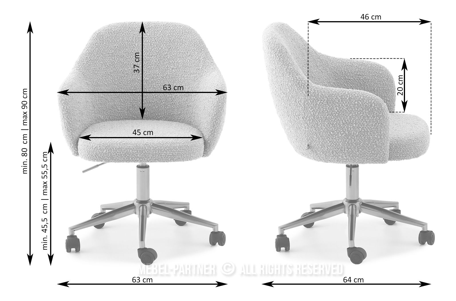 otočné sedátko, područky ano, středová základna s kolečky, nastavitelná Výška, opěrka hlavy ne
