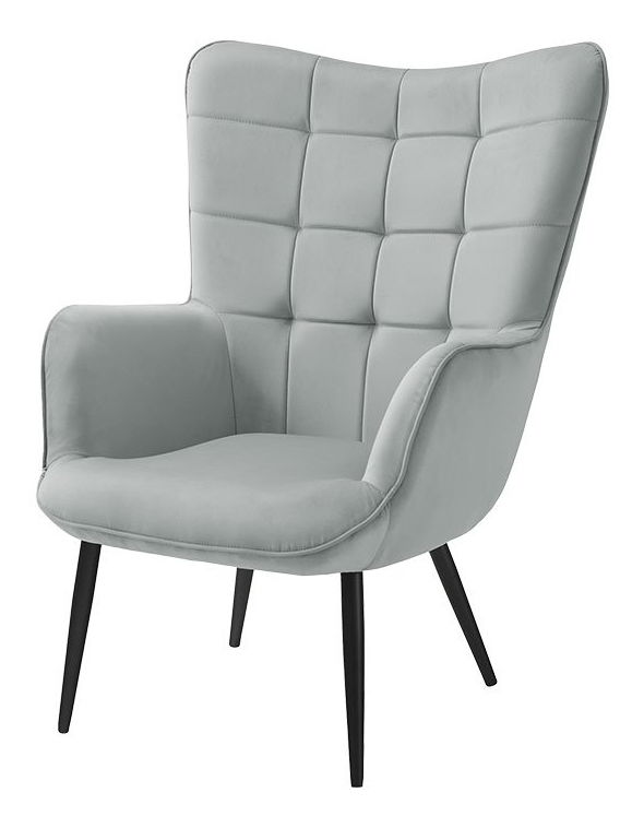 kovový rám a nohy, pěna 24 kg/m3 (sedák) a pěna 20 kg/m3 (opěradlo) + sametová látka 100% polyester 260 g/m2, maximální zatížení: do 120 kg, křeslo je volně stojící (opěradlo čalouněné látkou)