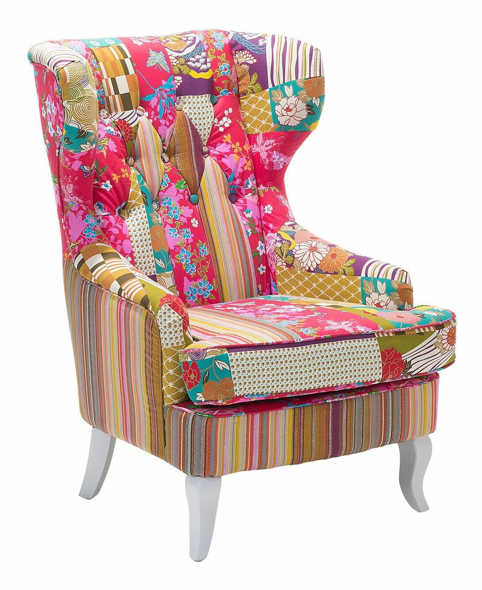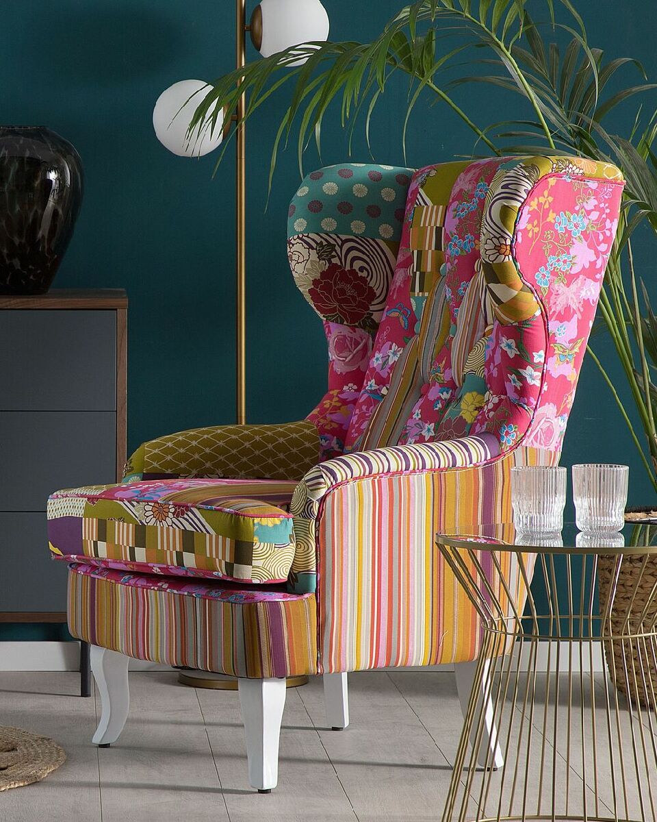 Výrazné patchworkové křeslo, které se stane středobodem obývacího pokoje. Poutavý design křesla je vyroben z pevné polyesterové tkaniny, která zaručuje výjimečnou odolnost při dlouhodobém používání. kousek doplní interiér v moderním nebo vintage stylu.