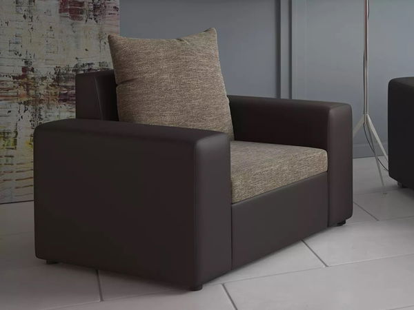 Křeslo Monarda (béžová + hnědá) o výšce 81 cm a hloubce 83 cm je ideálním místem k relaxaci po naporném dni. Široké opěrky na ruce a měkký polštář na zip umístěný za zády poskytují maximální pohodlí. Křeslo je vyrobeno z kvalitní konstrukce z masivního dřeva, dřevovlákna a překližky a má výplň z vlnitých vláken potaženou rounem. Výška sezení je 41 cm a hloubka sezení s polštářem je 53 cm. Křeslo je vyrobeno ve dvoubarevné kombinaci ekokůže a strukturované látky, s tkaninou Kornet, která je hustě tkaná látka se strukturou a melírovaným efektem. Tkanina je náročná na údržbu a její složení je 90% polyester, 10% akryl. Test oděruvzdornosti Martindale je 40 000 cyklů. Ekokůže Mandarin MA je kvalitní imitací pravé kůže, měkká, flexibilní, odolná a barvostálá. Můžete ji snadno umýt jemně navlhčeným hadříkem. Složení ekokůže Mandarin MA je 100% polyuretan a test oděruvzdornosti Martindale je 30 000 cyklů. Křeslo Monarda je dodáváno v jednom balíku o rozměrech 69x108x79 cm a váze 43 kg.
