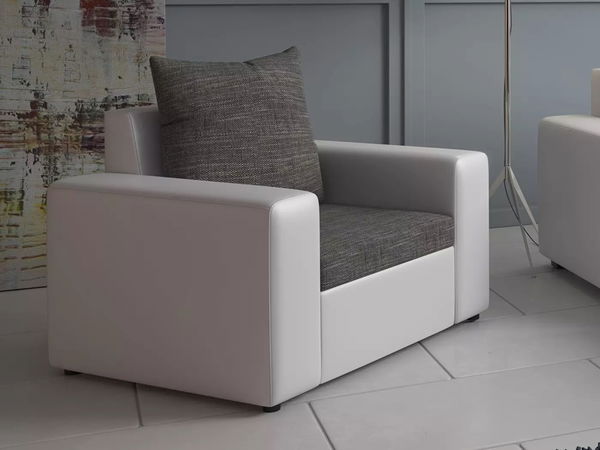 Křeslo Monarda (šedá + bílá) o výšce 81 cm a hloubce 83 cm je ideální k relaxaci po náročném dni. Má široké opěrky na ruce a měkký polštář na zip umístěný za zády, což zajišťuje maximální pohodlí. Konstrukce křesla je velmi kvalitní, vyrobená z masivního dřeva, dřevotřísky o tloušťce 16 mm, dřevovláknité desky a překližky. Výplň je z vlnitých vláken a polyuretanové pěny o hustotě 28 kg/m³ - T2844, která zajišťuje dlouhou životnost křesla. Křeslo Monarda má výšku sezení 41 cm, hloubku sezení s polštářem 53 cm a hloubku sezení bez polštářů 65 cm. Výška křesla po opěrky je 57 cm a bez polštáře 78 cm. Tkanina Kornet je hustě tkaná látka se strukturou a melírovaným efektem, složená z 90% polyesteru a 10% akrylu. Test oděruvzdornosti Martindale je 40 000 cyklů. Ekokůže Mandarin MA je kvalitní imitací pravé kůže, měkká, flexibilní, odolná a barvostálá. Tento materiál lze mýt jemně navlhčeným hadříkem. Složení ekokůže Mandarin MA je 100% polyuretan a test oděruvzdornosti Martindale je 30 000 cyklů. Křeslo Monarda je dodáváno v 1 balíku o rozměrech 69x108x79 cm a váze 43 kg.