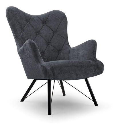 Retro křeslo typu „ušák“ o výšce 101 cm, šířce 80 cm a hloubce 88 cm je dokonalým spojením klasického stylu a moderního pohodlí. Jeho rám je vyroben z kombinace masivního dřeva a dřevotřísky, což zaručuje pevnost a dlouhodobou odolnost. Sedadlo a opěradlo jsou vybaveny bonellovou pružinou o tloušťce drátu 2,4 mm a 3 cm silné pěny T 30, což poskytuje vysoký komfort při sezení. Dolní konstrukce, včetně nožiček, je vyrobena z malovaného kovu, což dodává křeslu stylový a moderní vzhled. Křeslo je potaženo měkkou a luxusní velurovou tkaninou, což zvyšuje jeho estetickou hodnotu a poskytuje pohodlné sezení. Charakteristické boční opěrky tip "ušáku" přidávají pocit pohodlí a soukromí, což činí toto křeslo ideálním místem k relaxaci a odpočinku. Zadní strana křesla je potažena stejnou látkou jako přední, což umožňuje jeho umístění kdekoli v místnosti bez ztráty estetického vzhledu.