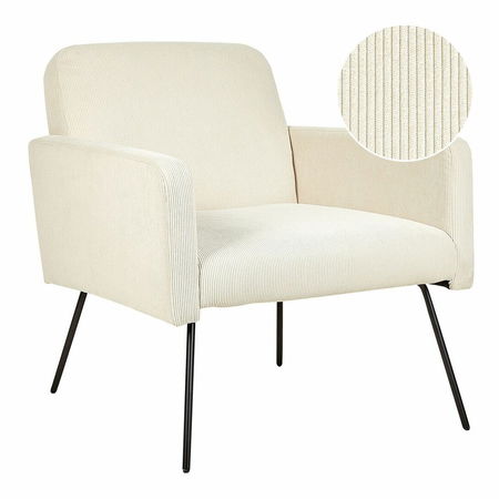 Pokud jde o obývací pokoj, vsaďte na retro design a maximální pohodlí. Dřevěná konstrukce tohoto křesla je čalouněna manšestrovou látkou s jemnou žebrovanou strukturou a spolu s tenkými kovovými nohami vytváří extravagantní design, který bez problémů zapadne do jakéhokoli moderního a vintage interiéru. Hluboké sedátko a měkká výplň zaručují, že tento stylový kousek přinese vám i vašim hostům zasloužený relax.
