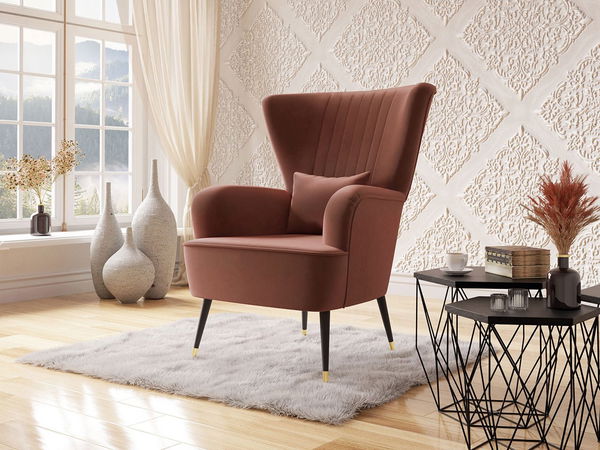 Křeslo Perokas (terakota + černá + zlatá)