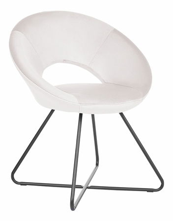 Zkrášlete svůj interiér s tímto krásným čalouněným křeslem v retro designu. Díky stylovému, zaoblenému opěradlu a zajímavému ocelovému podstavci zaujme všechny vaše hosty. Klasické krémově bílé provedení se dokonale hodí do různých stylů interiéru – od retro až po glamour. Tento kousek je čalouněný na dotek příjemným, měkkým sametem, který nevyžaduje každodenní péči k tomu, aby vydržel dlouhá léta.