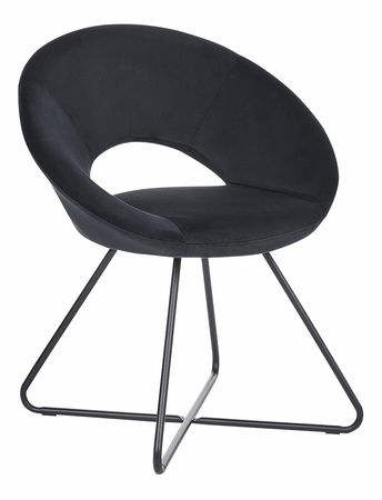 Zkrášlete svůj interiér s tímto krásný čalouněným křeslem v retro designu. Díky stylovému, zaoblenému opěradlu a zajímavému ocelovému podstavci zaujme všechny vaše hosty. Klasické černé provedení se dokonale hodí do různých stylů interiéru – od retro po glamour. Tento kousek je čalouněný na dotek příjemným, měkkým sametem, který nevyžaduje každodenní péči k tomu, aby vydržel dlouhá léta.