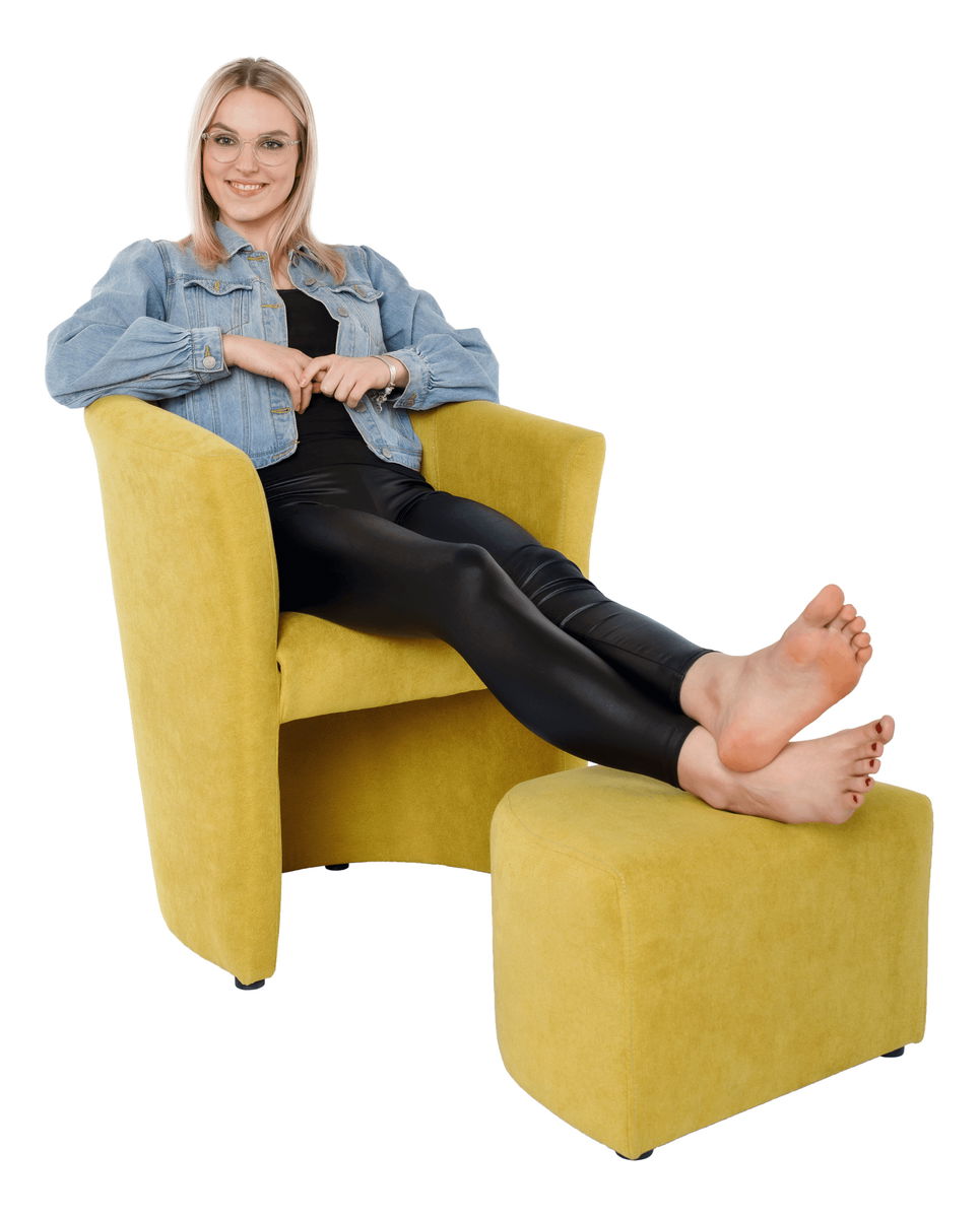 Křeslo Rosana (hořčicová) (s taburetkou)