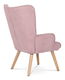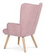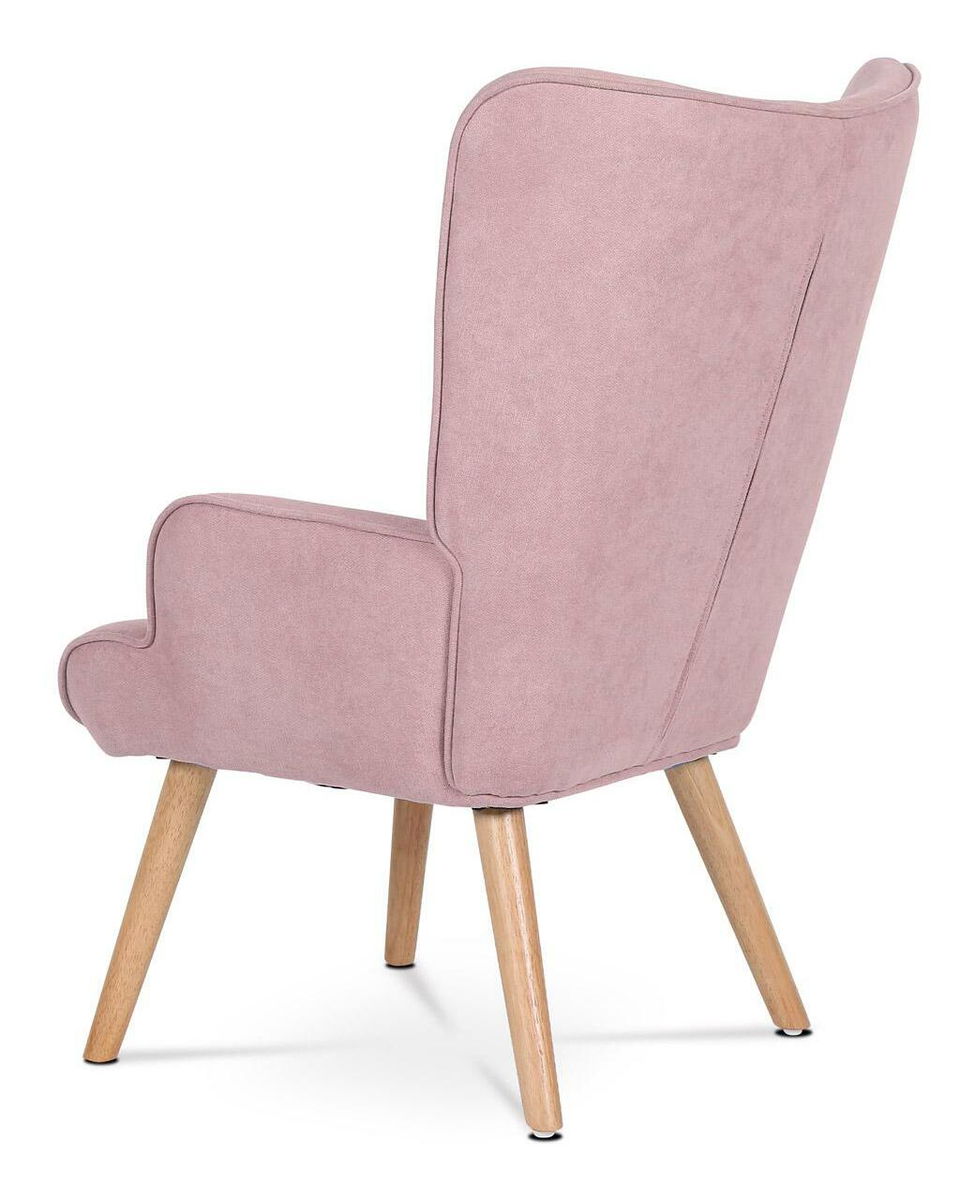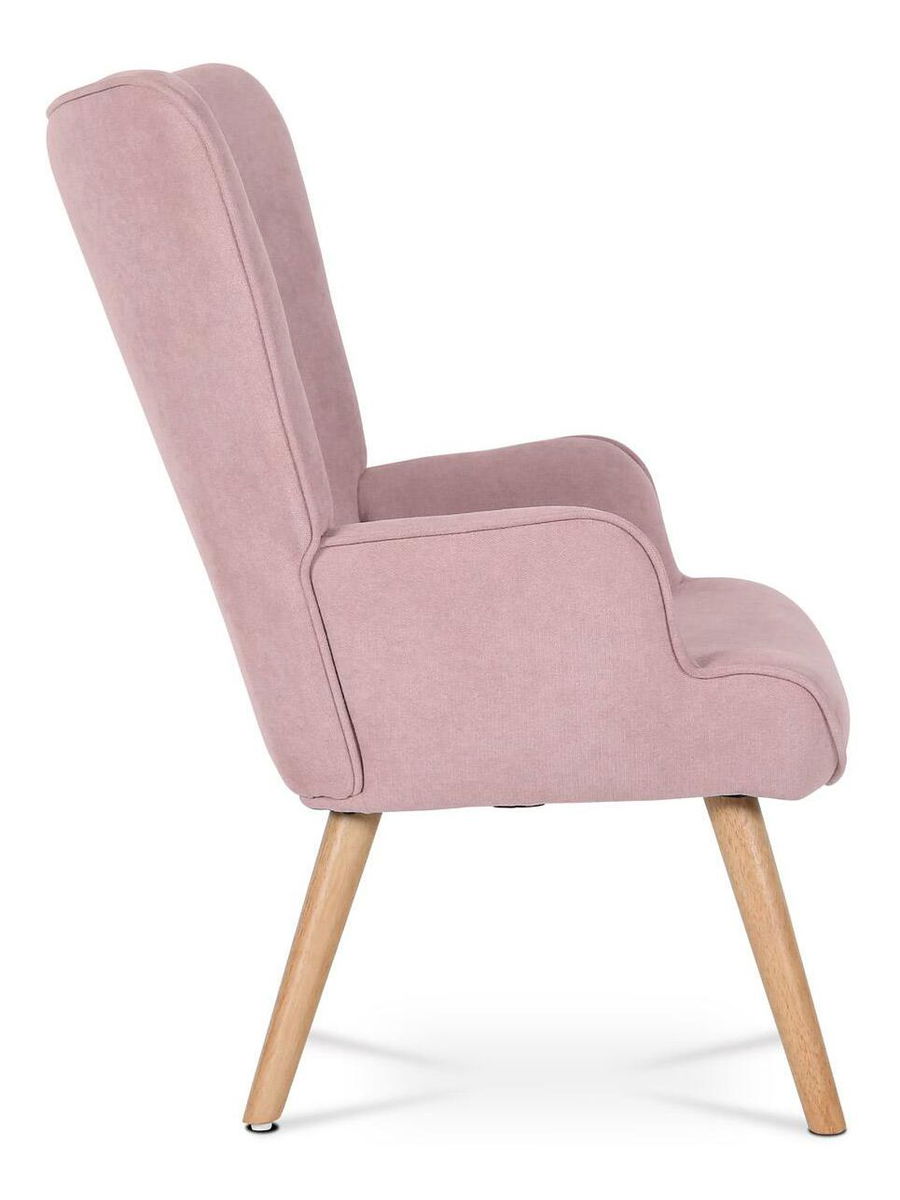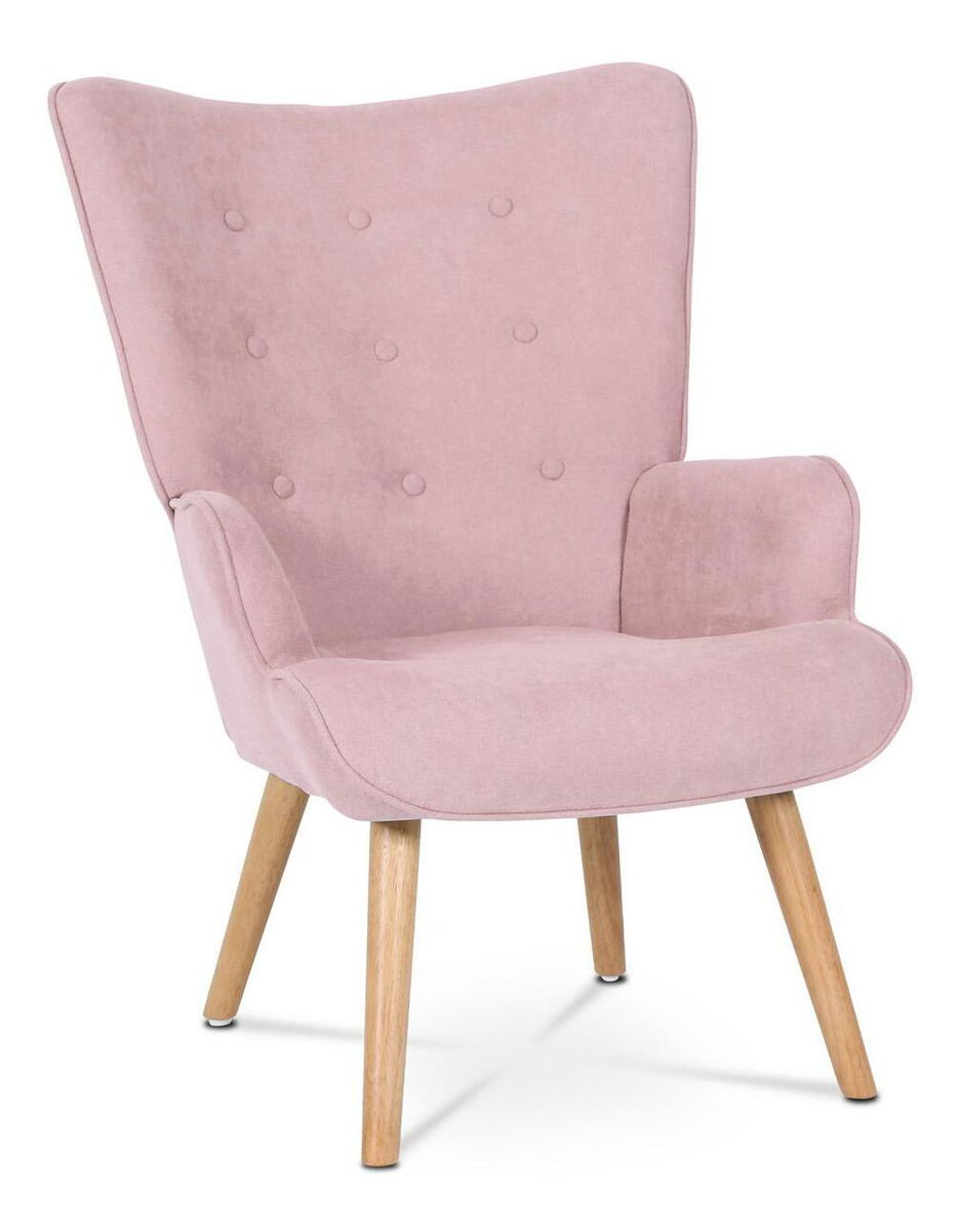 Křeslo minimalistických linií ve skandinávském stylu. Vyniká vysokým prohnutým opěradlem, úzkými a krátkými područkami a dekorativními jemnými čalounickými vtahy zakončenými knoflíky na čelní straně opěradla. To vše vytváří charakteristické severské retro linie tohoto křesla. Nejen design, ale hlavně pohodlí, které Vás obklopí při usednutí, bude příjemné zpestření při chvílích odpočinku a relaxace. A pro jeho zvýšení výborně poslouží i čtyřnohá a polstrovaná podnožka pro vyložení nohou, kterou ale můžete použít i jako příležitostný taburet. Potah je z výrazné starorůžové látky, kostra z masivního dřeva a výplň z kvalitní PU pěny. V místě sedáku jsou pro zkvalitnění sezení elastické popruhy. Dlouhé kónické dřevěné nohy jsou z masivního kaučukovníku v přírodním odstínu a lakovány transparentním lakem. Aby bylo eliminováno poškození podlahové krytiny, jsou opatřeny plastovými kluzáky. U zadních nohou rektifikovatelnými. Nosnost křesla je 120 kg.