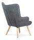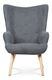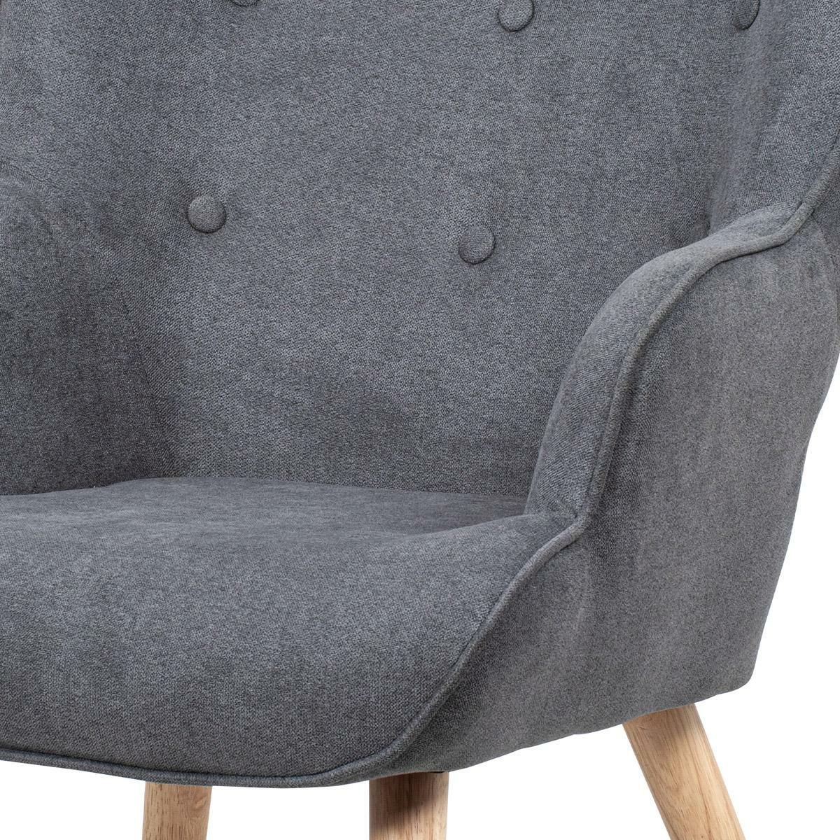 Křeslo minimalistických linií ve skandinávském stylu. Vyniká vysokým prohnutým opěradlem, úzkými a krátkými područkami a dekorativními jemnými čalounickými vtahy zakončenými knoflíky na čelní straně opěradla. usednutí, bude příjemné zpestření při chvílích odpočinku a relaxace. nohy jsou z masivního kaučukovníku v přírodním odstínu a lakovány transparentním lakem. Aby bylo eliminováno poškození podlahové krytiny, jsou opatřeny plastovými kluzáky.