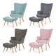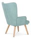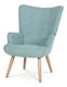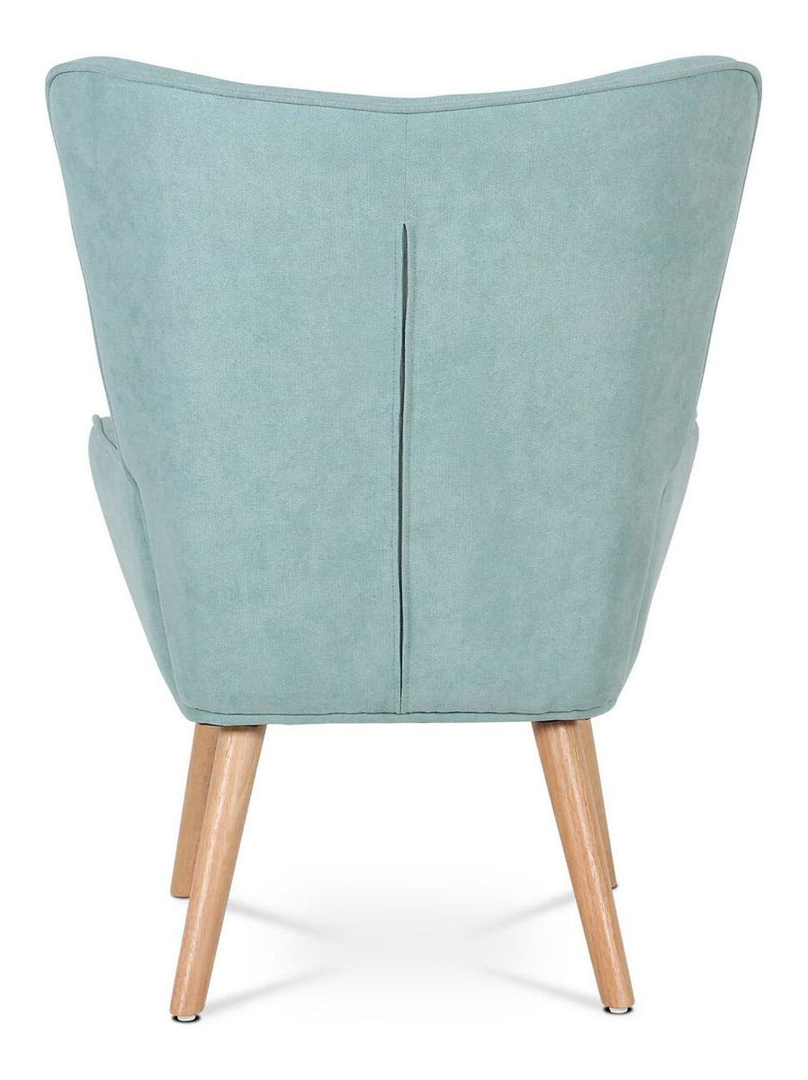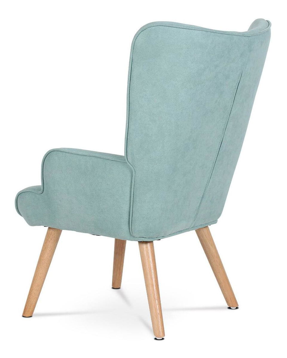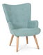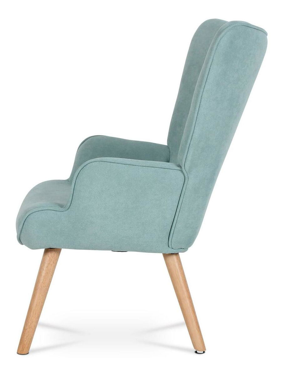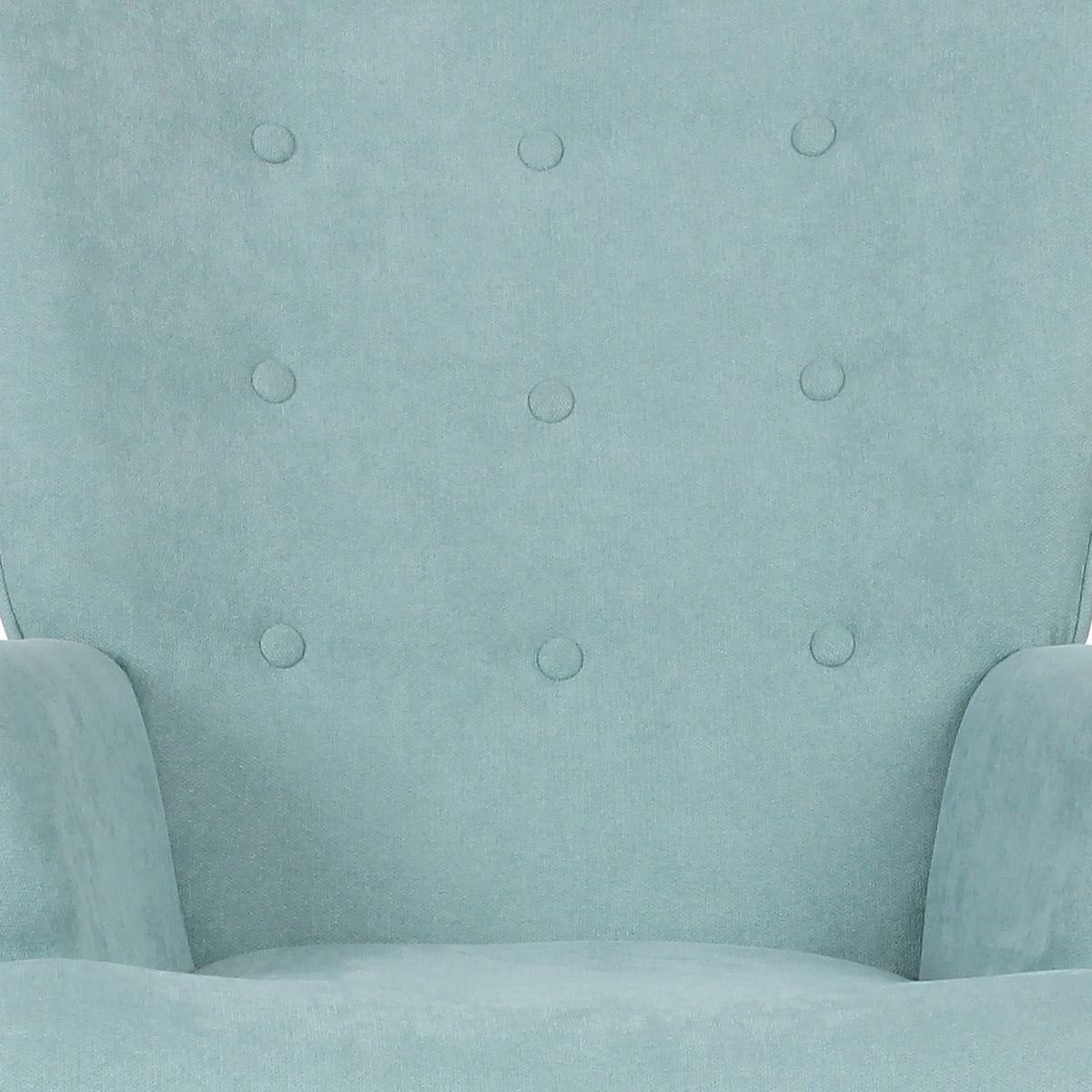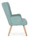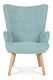 Křeslo minimalistických linií ve skandinávském stylu. Vyniká vysokým prohnutým opěradlem, úzkými a krátkými područkami a dekorativními jemnými čalounickými vtahy zakončenými knoflíky na čelní straně opěradla. zpestření při chvílích odpočinku a relaxace. A pro jeho zvýšení výborně poslouží i čtyřnohá a polstrovaná podnožka pro vyložení nohou, kterou ale můžete použít i jako příležitostný taburet. kónické dřevěné nohy jsou z masivního kaučukovníku v přírodním odstínu a lakovány transparentním lakem. Aby bylo eliminováno poškození podlahové krytiny, jsou opatřeny plastovými kluzáky.
