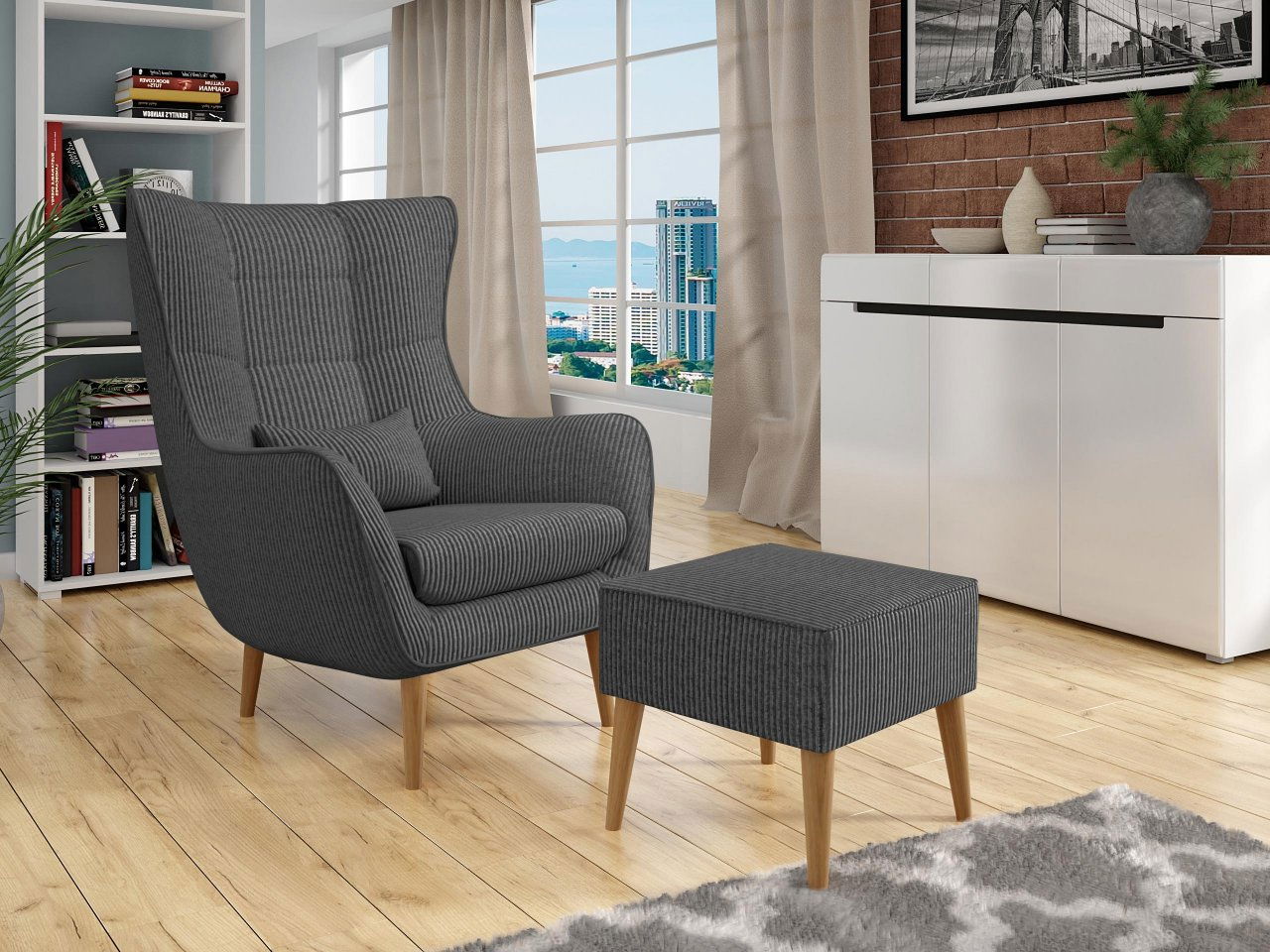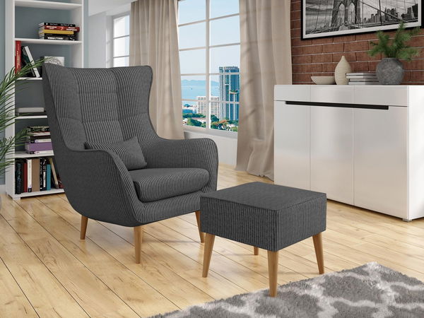 Křeslo s podnožkou Flerance (tmavě šedá)