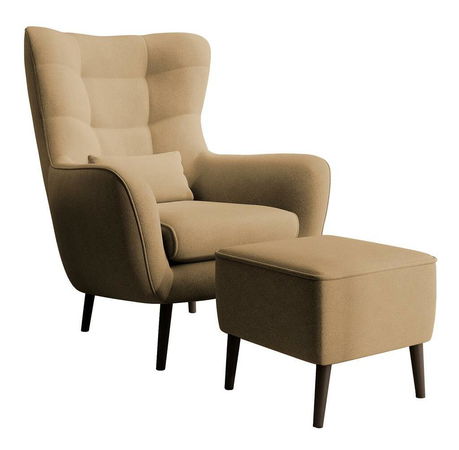 ZobrazitHledáte pohodlný nábytek do obývacího pokoje, kde si odpočinete po náročném dni? Vyberte si křeslo oušek se vyznačuje vysokým opěradlem s charakteristickými ušima obklopujícími tělo a pohodlnými područkami, které vám umožní ponořit se do jeho srdce s vaší oblíbenou knihou nebo šálkem horkého čaje. Elegantní prošívání dodává celku šarm a dřevěné nohy poskytují stabilní oporu. Módní tvar a přírodní barvy zapadnou do každého aranžmá, od skandinávského až po moderní styl Podrobnosti o produktu: křeslo včetně podnožky, tloušťka pěny v opěradle: 6 cm, tloušťka pěny v sedáku: 13 cm, výška opěradla: 70 cm. , pohodlné područky , stylové prošívání na opěradle, dřevěné nohy v černé barvě, nábytek čalouněný látkou, Castel 48 ve žluté barvě Castel je měkká, hladká látka vyznačující se vysokou odolností proti tření, oděru a žmolkování, díky čemuž je ideální pro každodenní nábytek. Další výhodou je Easy Clean Technology – materiál se snadno čistí, což umožňuje snadné odstranění nečistot s trochou vody a měkkým hadříkem.