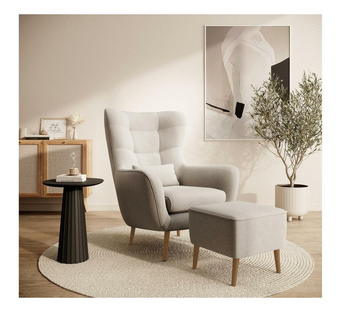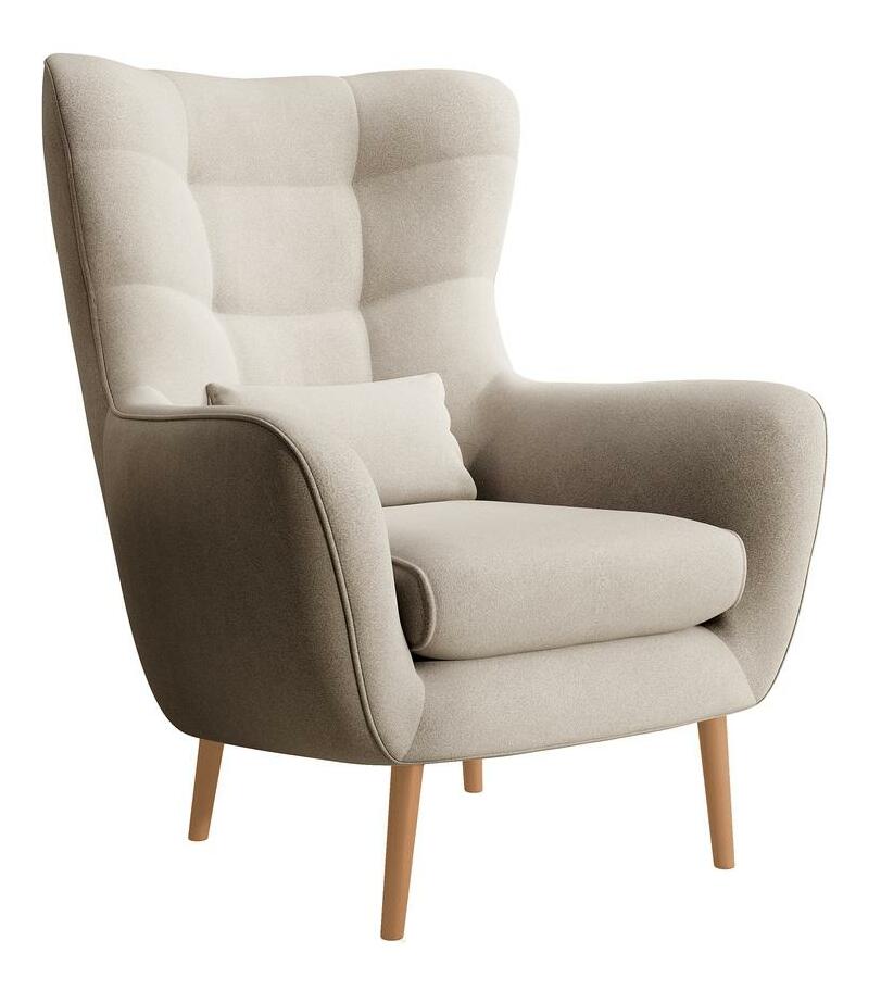 Hledáte pohodlný nábytek do obývacího pokoje, kde si odpočinete po náročném dni? Vyberte si křeslo oušek se vyznačuje vysokým opěradlem s charakteristickými ušima obklopujícími tělo a pohodlnými područkami, které vám umožní ponořit se do jeho srdce s vaší oblíbenou knihou nebo šálkem horkého čaje. Elegantní prošívání dodává celku šarm a dřevěné nohy poskytují stabilní oporu. Módní tvar a přírodní barvy zapadnou do každého aranžmá, od skandinávského až po moderní styl Podrobnosti o produktu: křeslo včetně podnožky, tloušťka pěny v opěradle: 6 cm, tloušťka pěny v sedáku: 13 cm, výška opěradla: 70 cm. , pohodlné područky , stylové prošívání na opěradle, dřevěné nohy v barvě světlé dřevo, nábytek potažený látkou, Castel 03 ve světle béžové barvě je měkká, hladká látka vyznačující se vysokou odolností proti tření, oděru a žmolkování ideální pro každodenní nábytek. Další výhodou je Easy Clean Technology – materiál se snadno čistí, což umožňuje snadné odstranění nečistot s trochou vody a měkkým hadříkem.