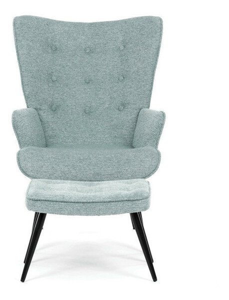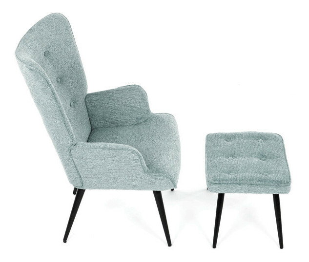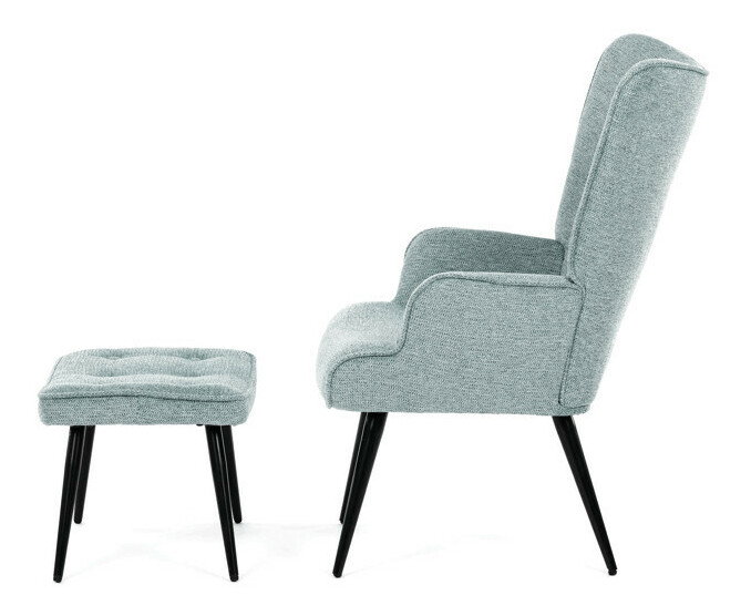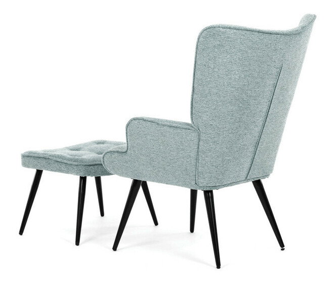 Relaxační křeslo s podnožkou v modré barvě je potaženo vodoodpudivou prémiovou látkou, která usnadňuje údržbu a zvyšuje odolnost vůči polití. Pevné černé kovové nohy zajišťují stabilitu a dlouhou životnost. Křeslo nabízí pohodlné opěradlo s integrovanými područkami, které podporují správnou ergonomii při relaxaci. Bonusový taburet se stejným čalouněním umožňuje pohodlné opření nohou a doplňuje celkový komfort. Design s jemným prošíváním a mírně zaoblenými tvary vytváří příjemný vizuální efekt vhodný do moderních i klasických interiérů. Taburet je o šířce 48cm, hloubce 38cm a výšce 36cm.