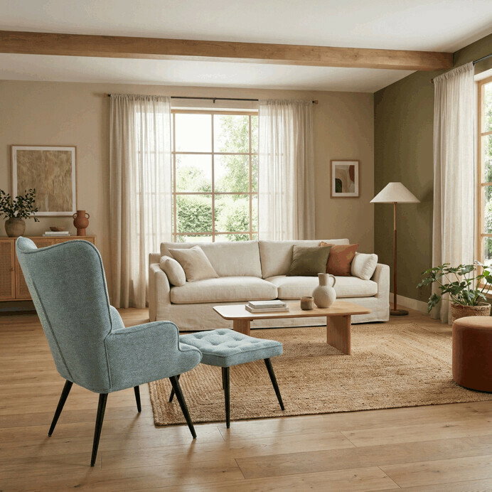 Křeslo s taburetkou Akitta (modrá)