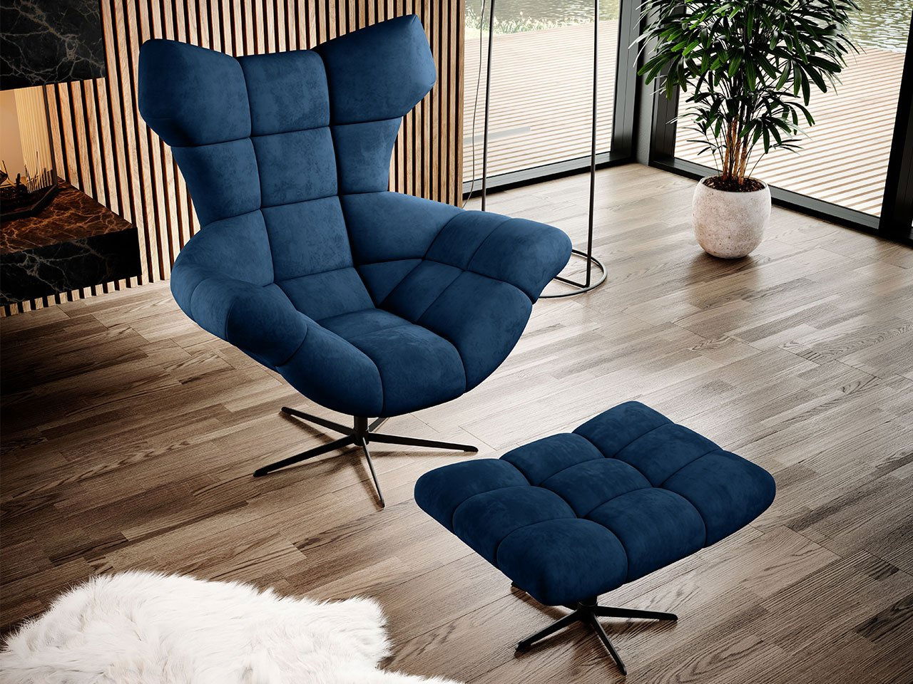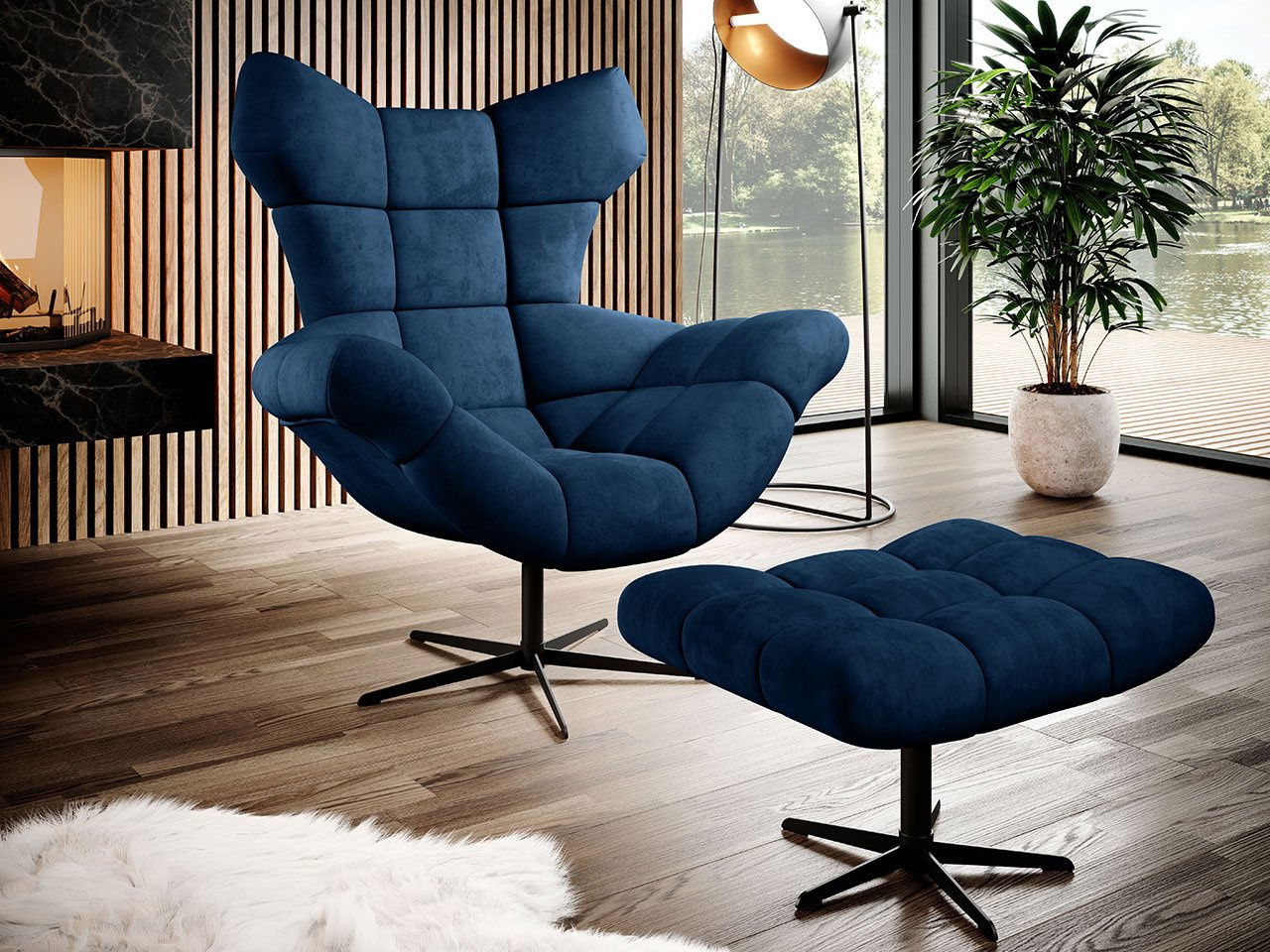 Křeslo s taburetkou Hellen (tmavě modrá)