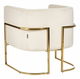 Ponořte se do pohodlí, které nabízí toto elegantní designové křeslo. Měkká výplň a hladké sametové čalounění vám poskytnou pohodlné sezení a navodí atmosféru, jakou lze zažít v luxusních hotelech. Díky kovovému rámu ve zlaté barvě se hodí do interiérů ve stylu glamour, ale také do těch moderně zařízených. Umístěte jej do obývacího pokoje a slaďte s konferenčním stolkem s lesklýma nohama nebo do ložnice, kde vynikne v kombinaci s toaletním stolkem.