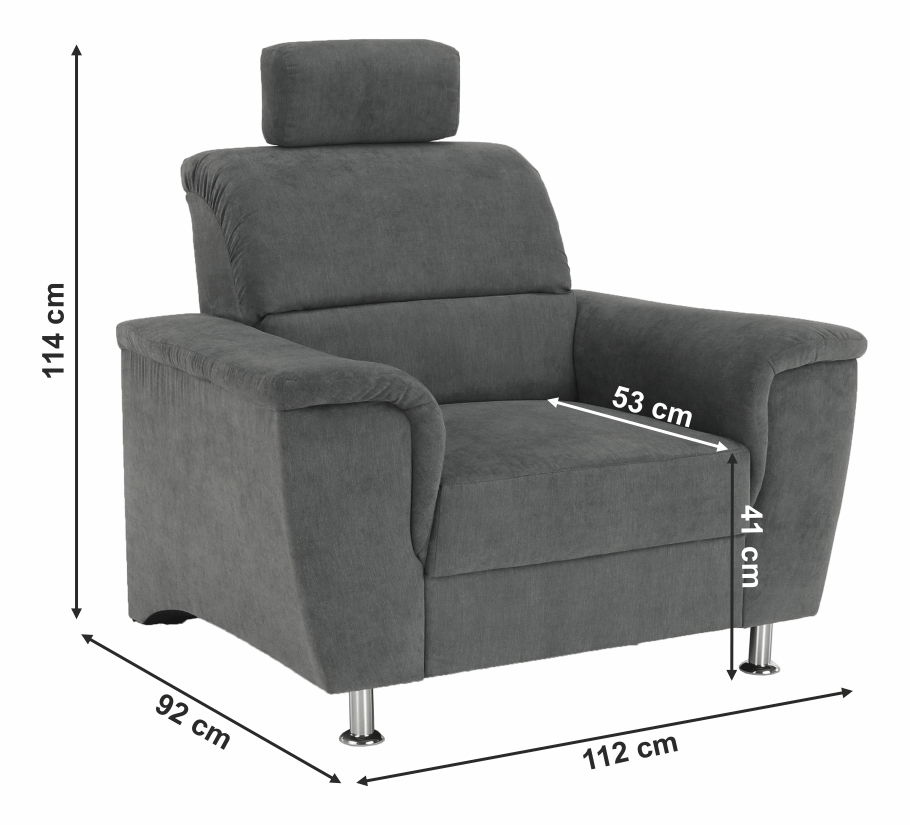 Křeslo Sargetia (šedá) je elegantní křeslo, které Vám poskytne pohodlné místo k sezení. Vyrobeno z kvalitní látky, která odolává opotřebení, s testovanou odolností 72 000 cyklů dle testu Martindale. Svou šedou barvou Matrix 17, kovovými nožičkami s povrchovou úpravou chrom a rozměry 112x92x114 cm bude skvělým doplňkem každé moderního interiéru. Křeslo má výšku sedu 41 cm, hloubku sedu 53 cm a výšku spodního prostoru od podlahy 10 cm. Je vhodné pro osobu s nosností až 90 kg.