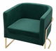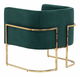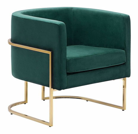 Ponořte se do pohodlí, které nabízí toto elegantní designové křeslo. Měkká výplň a hladké sametové čalounění vám poskytnou pohodlné sezení a navodí atmosféru, jakou lze zažít v luxusních hotelech. Díky kovovému rámu ve zlaté barvě se hodí do interiérů ve stylu glamour, ale také do těch moderně zařízených. Umístěte jej do obývacího pokoje a slaďte s konferenčním stolkem s lesklýma nohama nebo do ložnice, kde vynikne v kombinaci s toaletním stolkem.