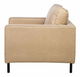 Toto křeslo je ideálním kusem nábytku do jakéhokoli obývacího pokoje a svým nadčasovým designem pozvedne vzhled zařízení místnosti. Jednoduchá silueta na kovových nohách, která je čalouněna béžovou umělou kůží, působí minimalisticky a elegantně. Čalounění je příjemné na dotek a v kombinaci s hrubě vyztuženým sedadlem nabízí úžasný pocit komfortu. Toto křeslo vnese do jakéhokoli moderního nebo tradičně zařízeného interiéru nádech luxusu.