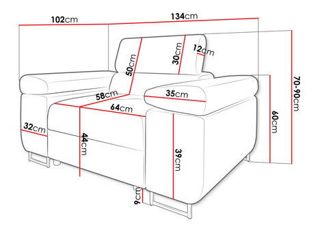 Nohy: pochromovaný kov (výška 9 cm) + plast