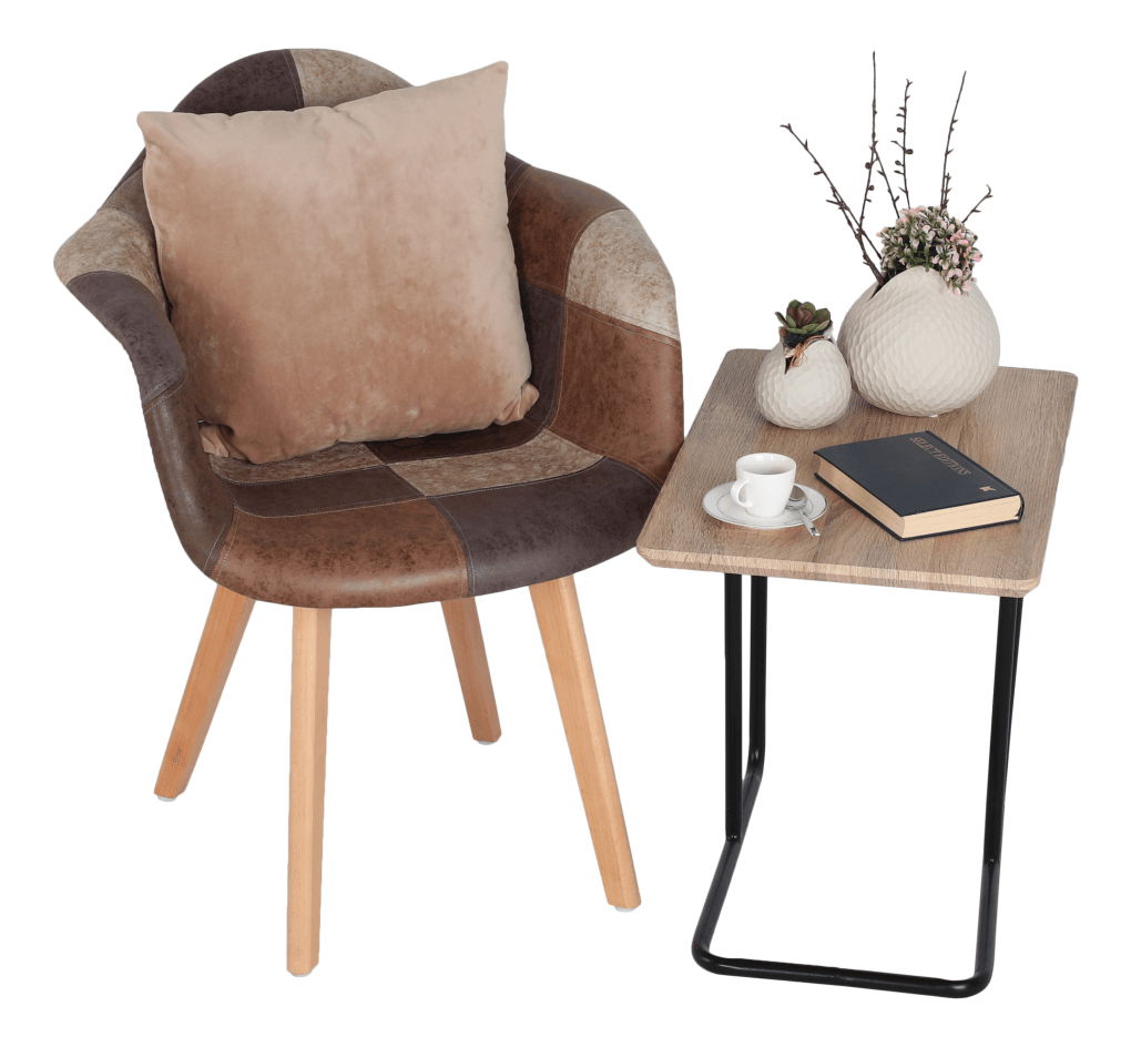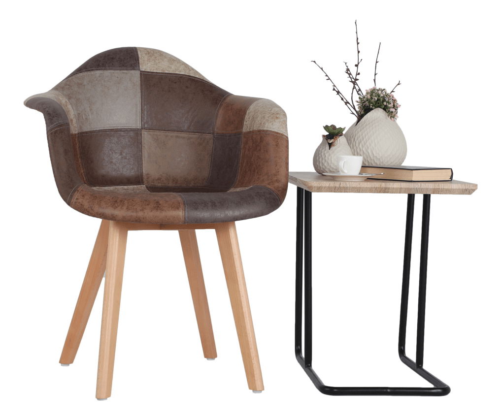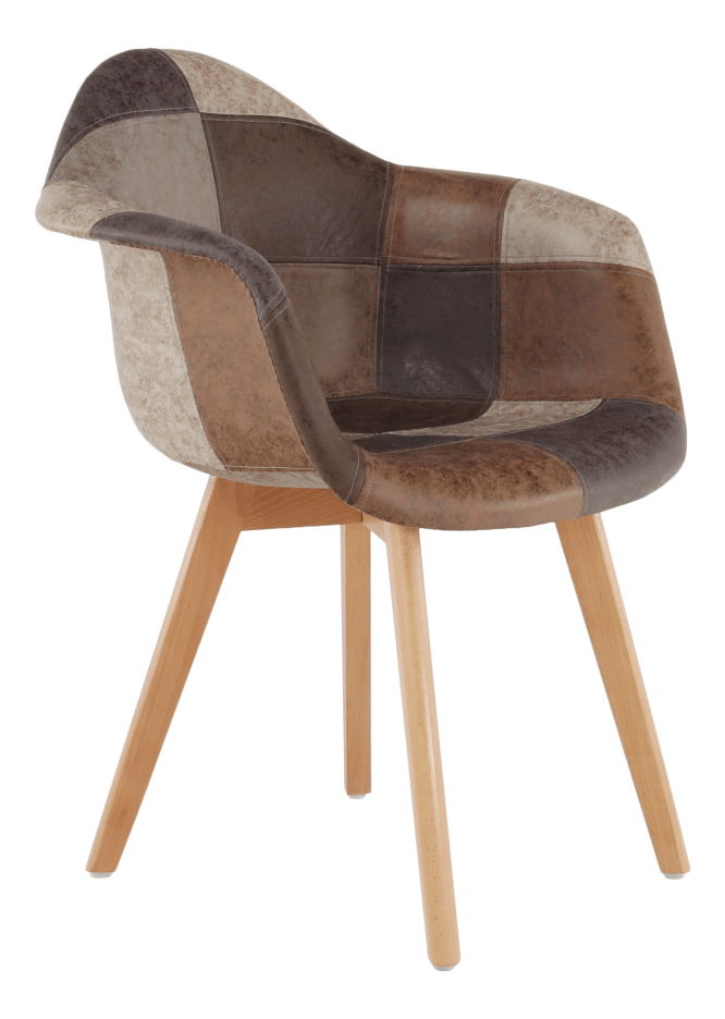 Pokud jste fanouškem útulných interiérů, vyberte si nábytek, který zaručuje pohodlí a zaujme svým designem. Křeslo Tesfaye je model, který se bude perfektně hodit jako vkusný designový prvek zabezpečující maximální pohodlí. Sedadlo je vyrobeno z ekokůže a plastu, v provedení patchwork - jde o sešívání malých, různobarevných kousků látky tak, že spolu vytvářejí větší geometrické vzory. Nohy jsou vyrobeny z bukového dřeva. Moderní kombinace materiálů a barev dělají z křesla Tesfaye unikát.