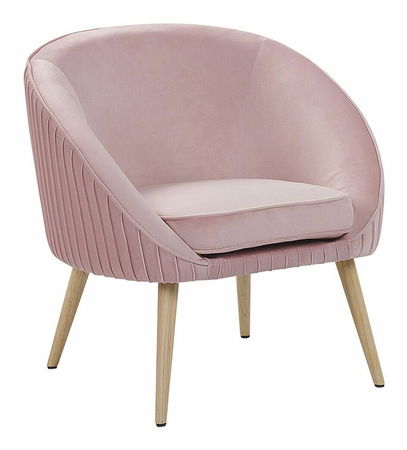 Ideální kousek pro milovníky retro stylu. Toto elegantní křeslo jistě osvěží zařízení vašeho obývacího pokoje, a to díky elegantnímu sametovému čalounění v jemné růžové barvě a dekorativní úpravě zadní části opěradla. Vysoce kvalitní materiály přispívají ke skvělému vzhledu křesla a nohy z masivu zaručují jeho stabilitu.