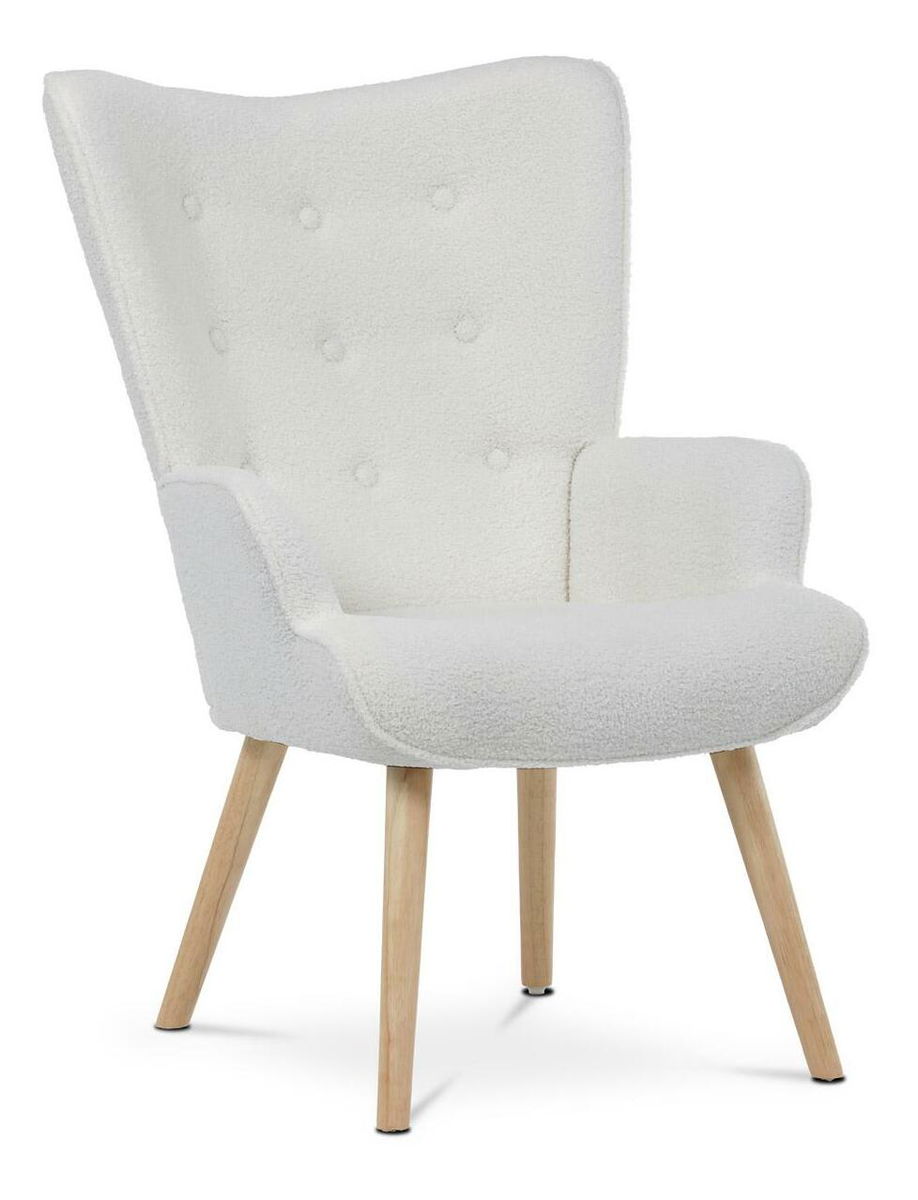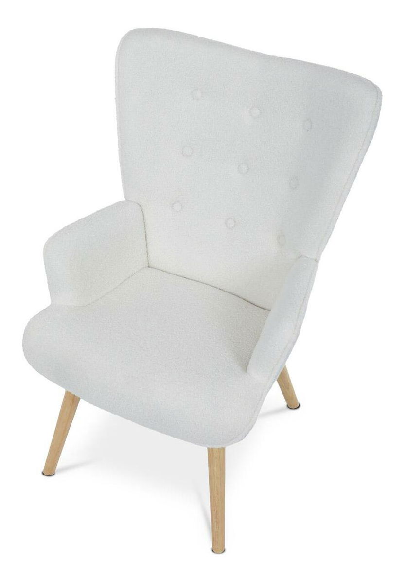 ZobrazitElegance a pohodlí se setkaly v tomto skvělém křesle „ušák“. Jeho švédský styl přináší do vašeho interiéru jedinečnou atmosféru. Zkrášlete svůj obývací pokoj nebo pracovnu tímto křeslem, které v sobě kombinuje bílou barvu a přírodní masivní nohy. Potah křesla je vyroben z látky bouclé s jemným povrchem. Pěnová výplň křesla Vám poskytne skutečný komfort. Kromě toho, že je toto křeslo stylové a moderní, nabízí také optimální rozměry. S kompaktní šířkou 68 cm, hloubkou 76 cm a výškou 101 cm je ideálním řešením pro menší místnosti, případně pokoje pro hosty. Nehledě na svoji lehkost je toto křeslo velmi odolné a použitelné ik relativně větší zátěži díky své nosnosti až 130 kg.