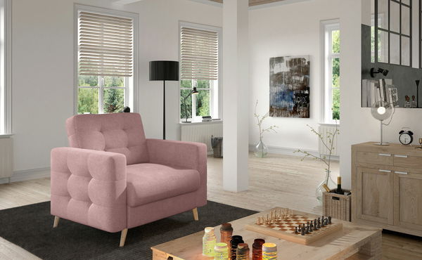 ZobrazitKřeslo Adelle Typ 09 (světlorůžová) o výšce 86 cm a hloubce 92 cm je pohodlným a elegantním kouskem nábytku, který nabízí širokou škálu barevných variant. Jeho čalounění je vyrobeno z látky Soro 61. Křeslo je vybaveno falistou pružinou a pěnou sedáku T3030 a opěradla T2542, které zaručí pohodlné posezení. Rám křesla je vyroben z borovice a nožičky z dubu Sonoma, které mají výšku 17 cm. Křeslo Adelle má nosnost až 110 kg a je částečně smontováno.