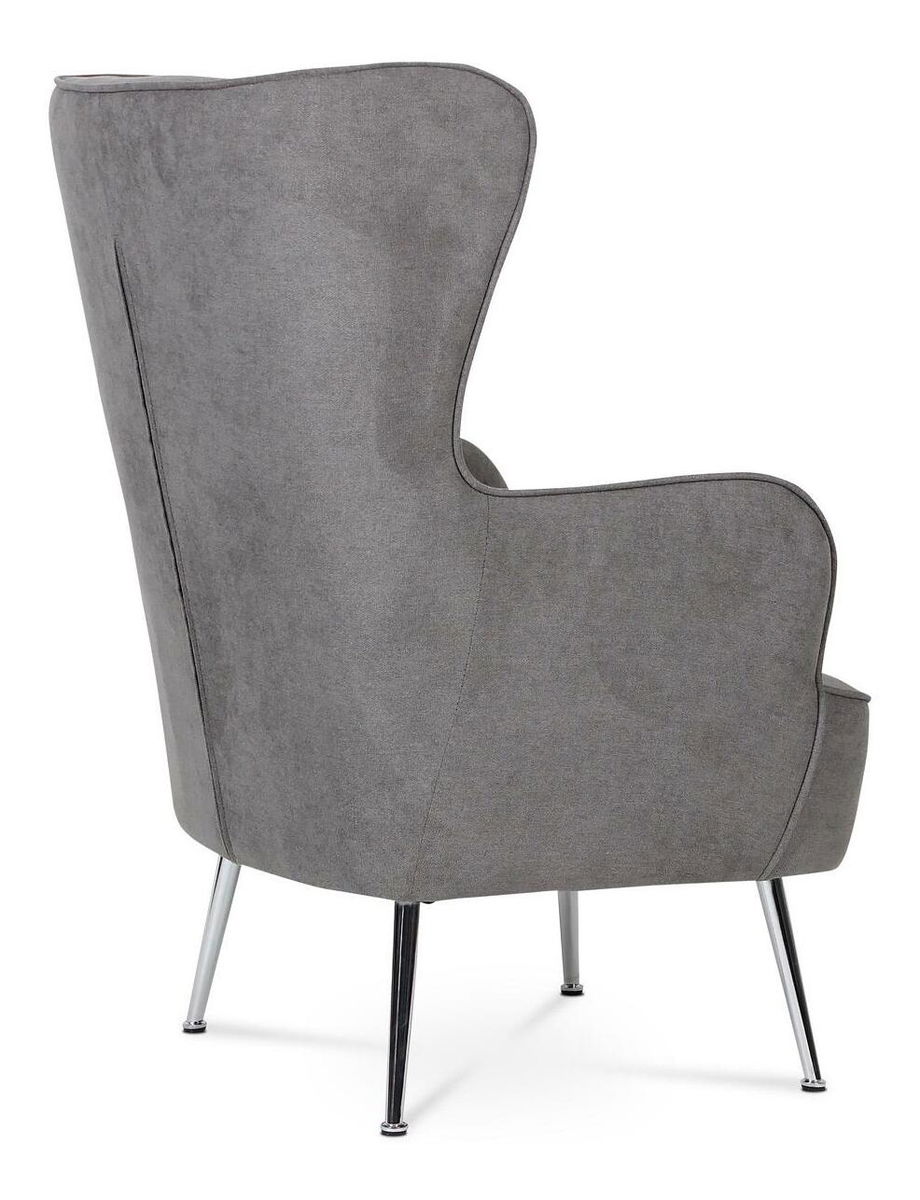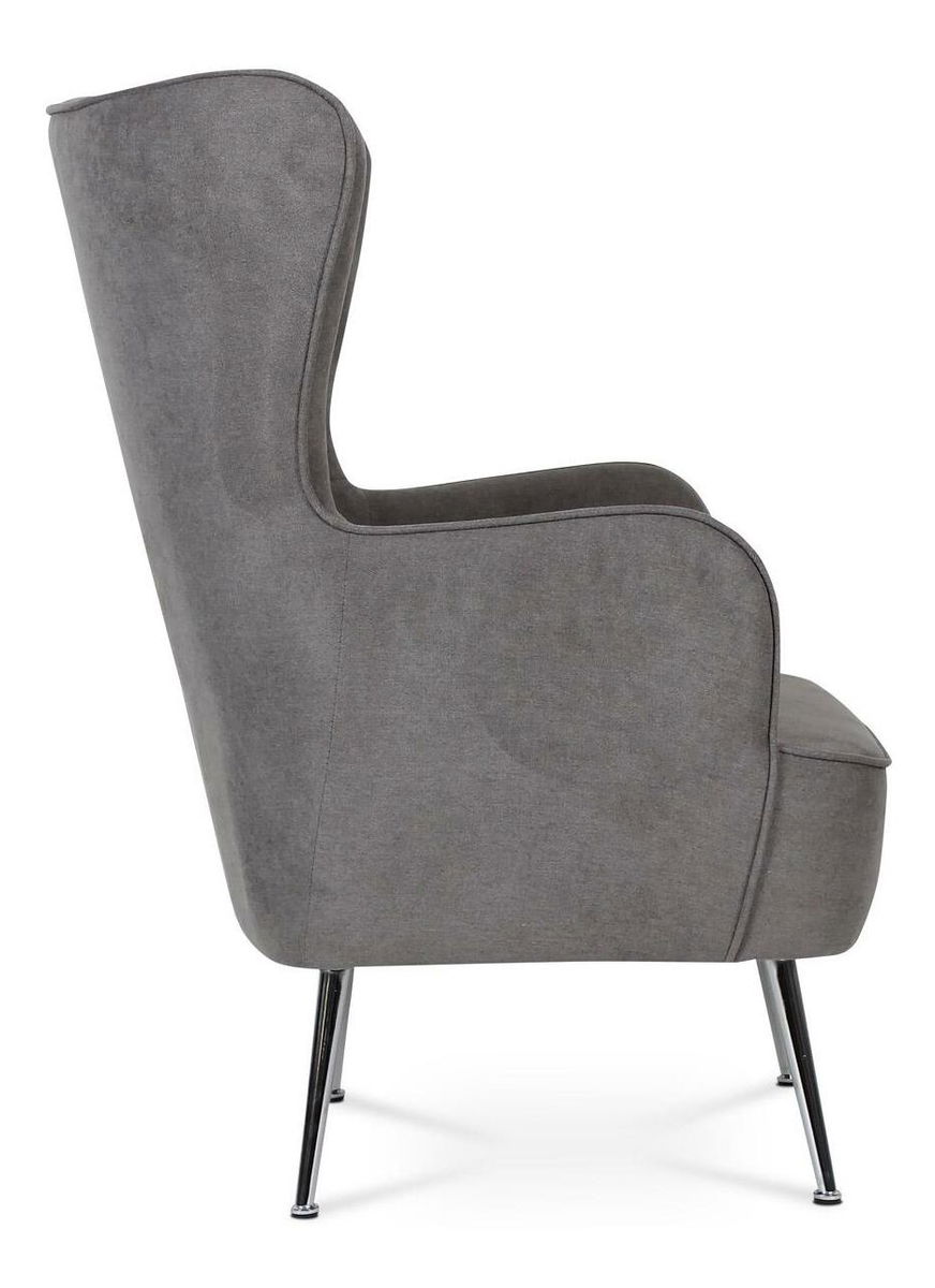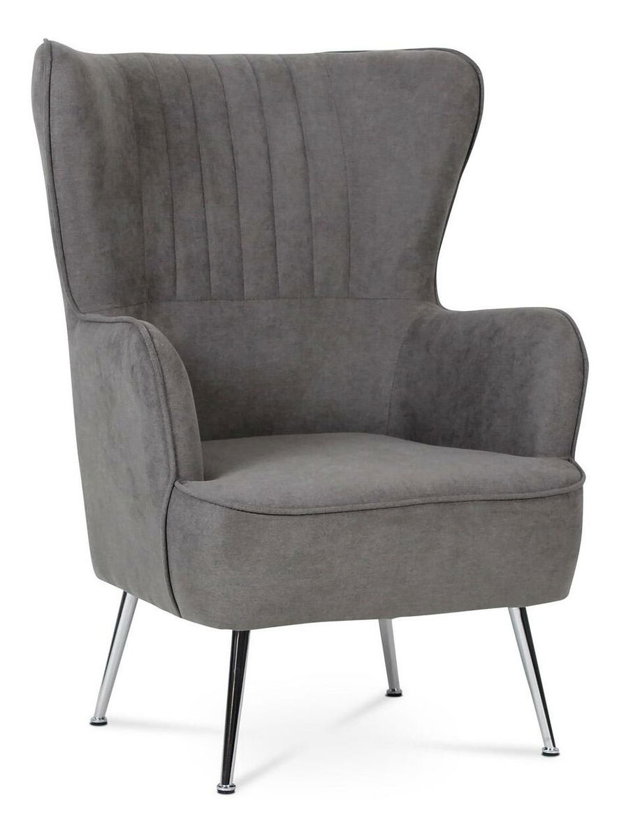 ZobrazitRetro křeslo „ušák“ s vysokým pohodlným sedákem, vysokými područkami a prošívaným zaobleným opěradlem. To vše je doplněno úzkým kovovým kónickým nohama v chromovém provedení. Tím dostáváme nejen nádech lehkosti, ale také příjemný kontrast k objemnější sedací části. Stačí jen usednout a vychutnávat pohodlí, které toto křeslo přináší. Potah je z šedé látky, kostra křesla z masivu. Výplň z kvalitní PU pěny, sedák vyztužený elastickými popruhy. Světlá výška křesla je 23 cm, výška područek úctyhodných 66 cm a šířka 8 cm. Nosnost je 130 kg. Svým stylem si toto křeslo najde důstojné místo v každém interiéru, kde bude nepřehlédnutelným prvkem.