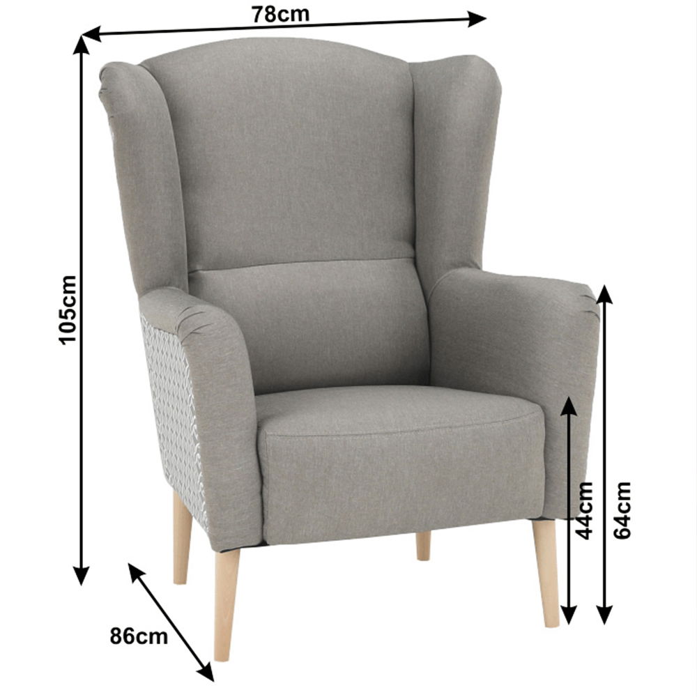 Křeslo ušák Bander (capuccino) je vysoké 105 cm a hluboké 86 cm. Je vyrobeno z látka Lux 26 a má vzor Evo 26. Výška sedu je 44 cm a výška opěrky na ruce je 64 cm. Křeslo má nosnost až 120 kg. Textilie Lux má oděruodolnost 80 000 oděrů podle testu Martindale a rovněž textilie Evo. Rozměry křesla jsou 78x86x105 cm, výška spodního prostoru od podlahy je 21 cm, šířka sedáku je cca 50 cm a hloubka sedáku je 52 cm. Křeslo je dodáváno v demontu a je k dispozici v barvě capucino Lux 26/vzor Evo 26.