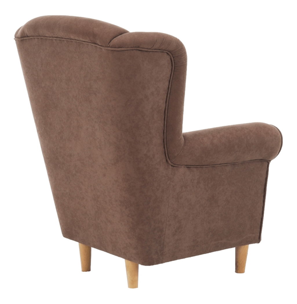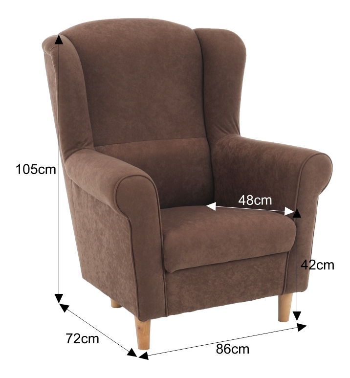 Relax v křesle s opěrkou na hlavu patří k těm nejpohodlnějším. Pohodlné a designově zajímavé křeslo se stane ozdobou ve Vaší obývacím pokoji. Komfort zajišťuje dostatečně vysoká a tvarovaná opěrka zad. Pohodlí Vašim rukám zajistí masivní opěrky rukou. Křeslo je vyplněno PUR pěnou, která je zpočátku tužší, ale se stává komfortnější aniž by ztrácela na objemu. Křeslo má masivní dřevěné nožičky v barevném provedení buk. Křeslo je čalouněné hnědou látkou Alova.