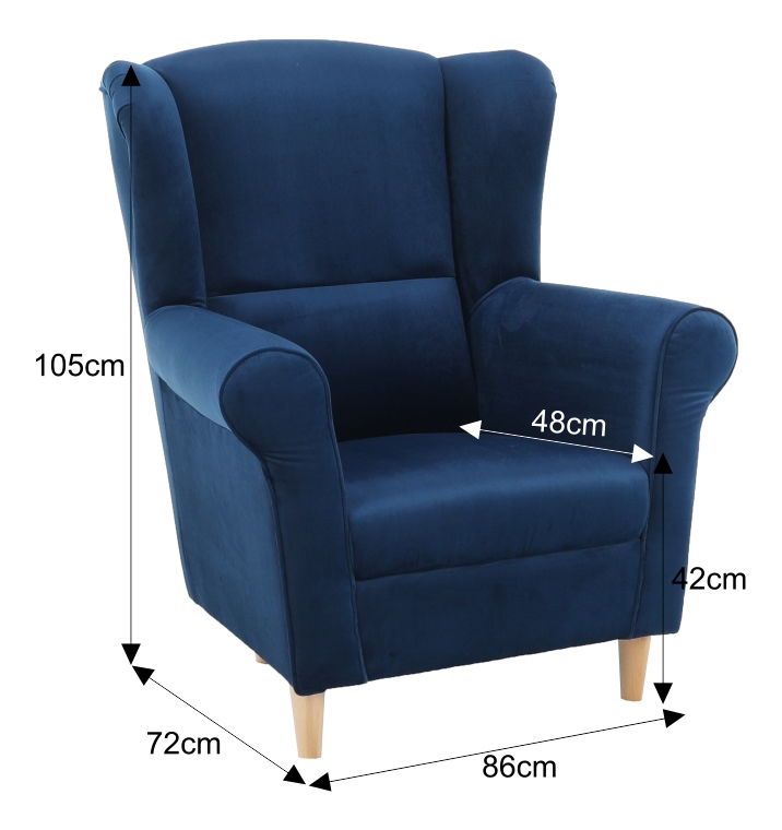 Křeslo ušák Charlie Rose 14 (modrá) o výšce 105 cm a hloubce 72 cm je designovým doplňkem pro každou domácnost. S vysokou opěrkou zad tvarovanou pro předcházení bolestem páteře a krku a masivními područkami poskytuje příjemné a pohodlné sezení. Křeslo má masivní dřevěné nožičky a jeho sed je ve výšce 42 cm a hloubce 48 cm. Materiál se skládá z látky, dřeva a PUR pěny. Křeslo je odolné proti opotřebení s testováním Riviera textilie až na 90 000 oděrů. Výrobek má nosnost 120 kg a dodává se v demontu. Relaxujte v náruči pohodlného křesla Kellen a užijte si své oblíbené filmy a hudbu.