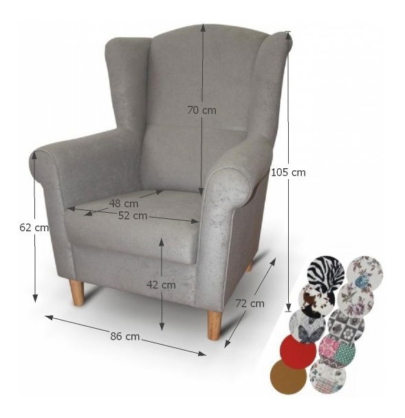 Komfortní křeslo, ve kterém se Vám bude dobře relaxovat. Opěrka zad je vysoká 70 cm a je tvarovaná. Křeslo má velmi příjemně a pohodlné sezení a mohutné opěrky rukou. Jádro křesla je tvořeno PUR pěnou, která je na začátku tužší no po používání křesla se stane komfortnější. Křeslo má stabilní dřevěné nožičky ve farabenom provedení buk.