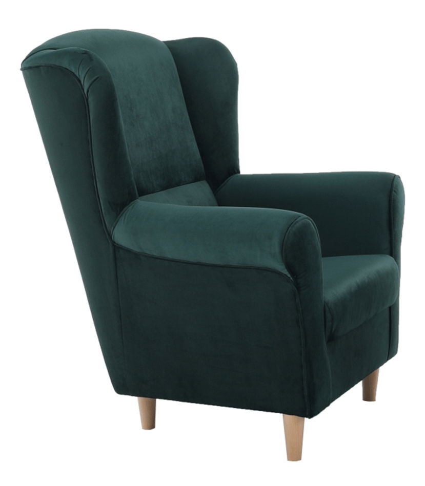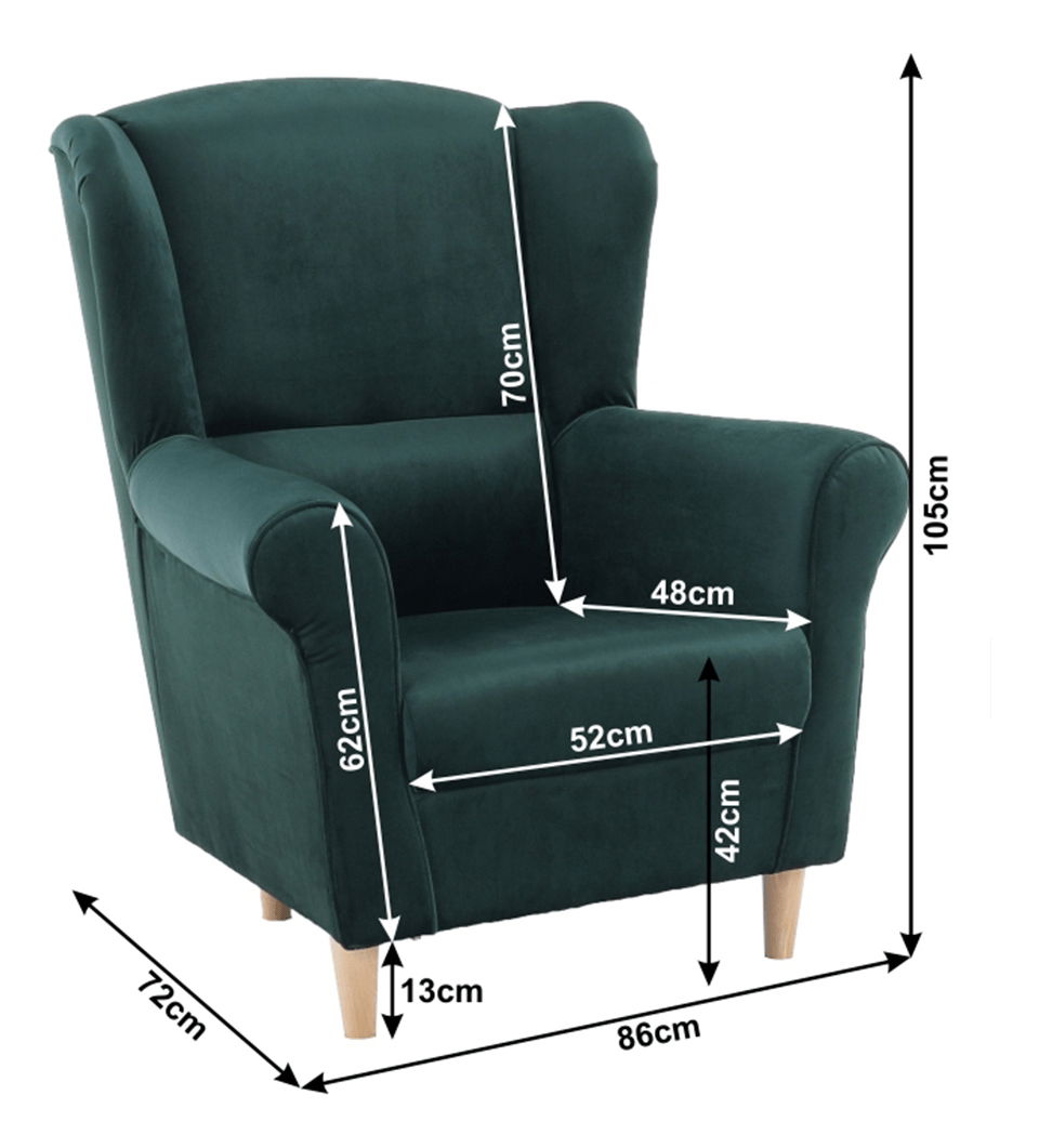 Křeslo ušák Charlie (zelená) výška 105 cm hloubka 72 cm Rivera 38 zelená je dokonalá volba pro každého, kdo hledá pohodlné a relaxační sezení. Vysoká opěrka zad a tvarovaný design podporují správnou polohu těla a zabraňují bolestem zad a krku. Křeslo je vybaveno masivními područkami, které poskytují dokonalé pohodlí. Materiál se skládá z látky, dřeva a PUR pěny a nožičky jsou vyrobeny z masivního dřeva. Křeslo má výšku sedu 42 cm a hloubku sedu 48 cm. Textilie Riviera má vysokou odolnost, a to až 90 000 oděrů podle testu Martindale. Křeslo má rozměry 86x72x105 cm, výšku zádové opěrky 70 cm a výšku opěrky na ruce 62 cm. Jeho nosnost je 120 kg a dodává se v demontu. S tímto křeslem si užijete velice příjemné a pohodlné sezení.