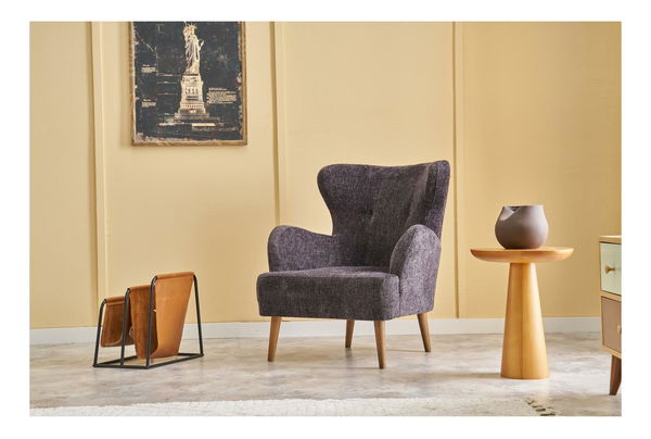 Křeslo ušák Kaveh 2 (antracit + dřevo)