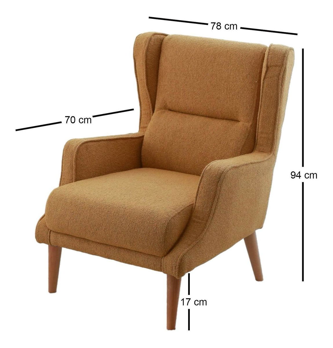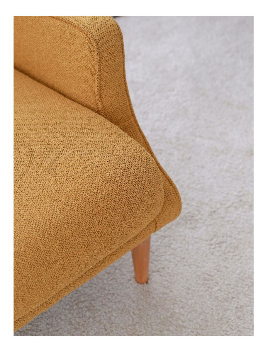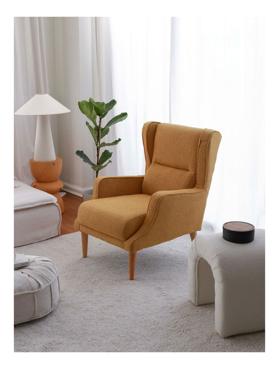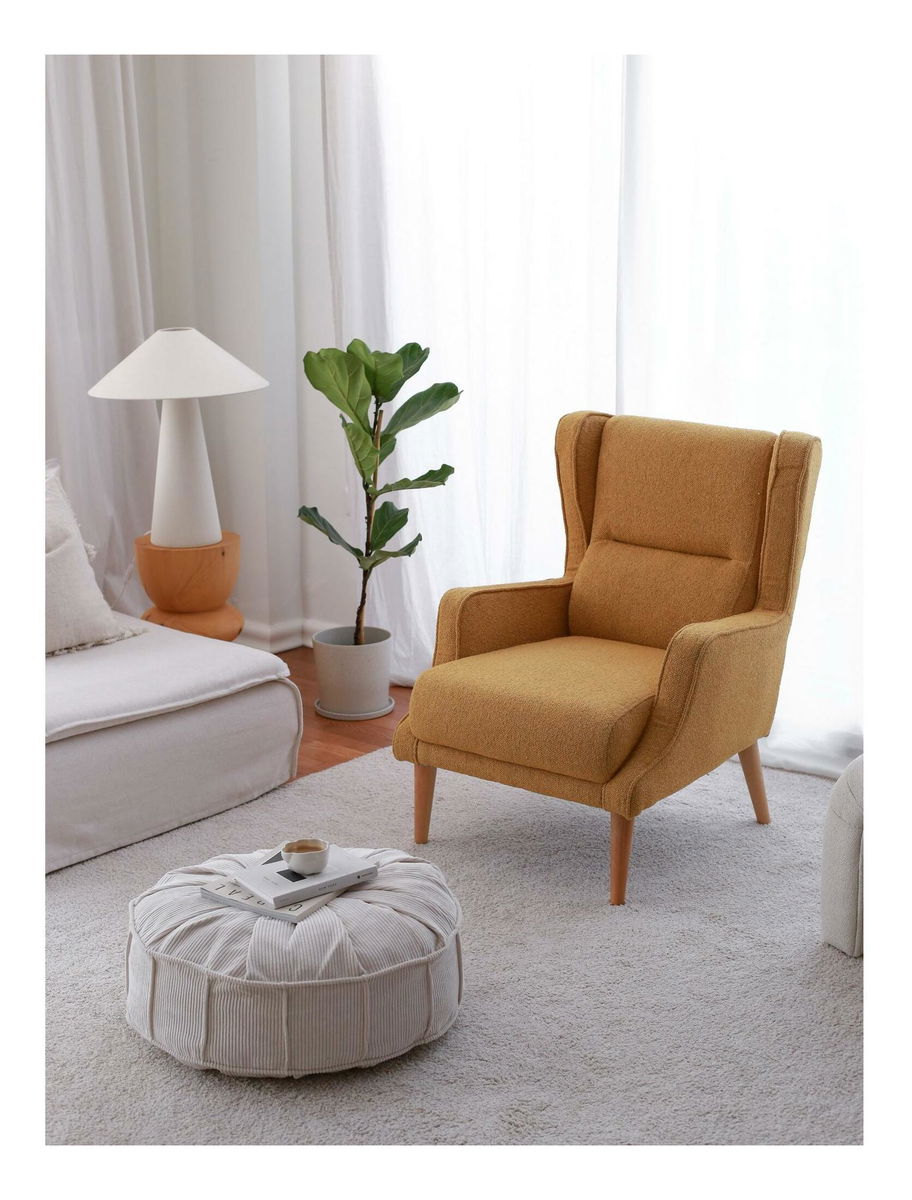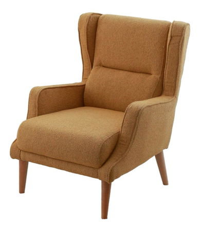 Křeslo ušák Klamoretta (hořčičná + dřevo)