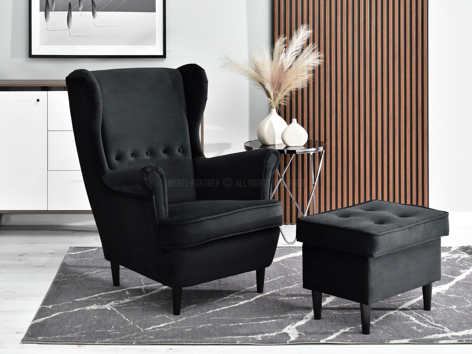 Křeslo ušák Margis (černá + bílá)