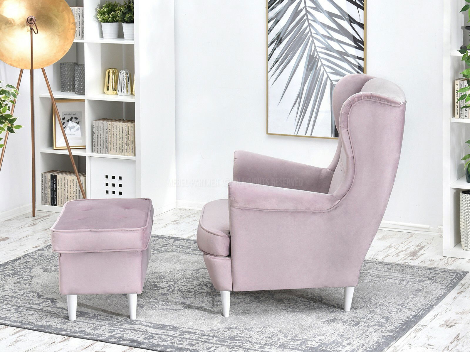 Křeslo ušák Margis (světlofialová + buk)
