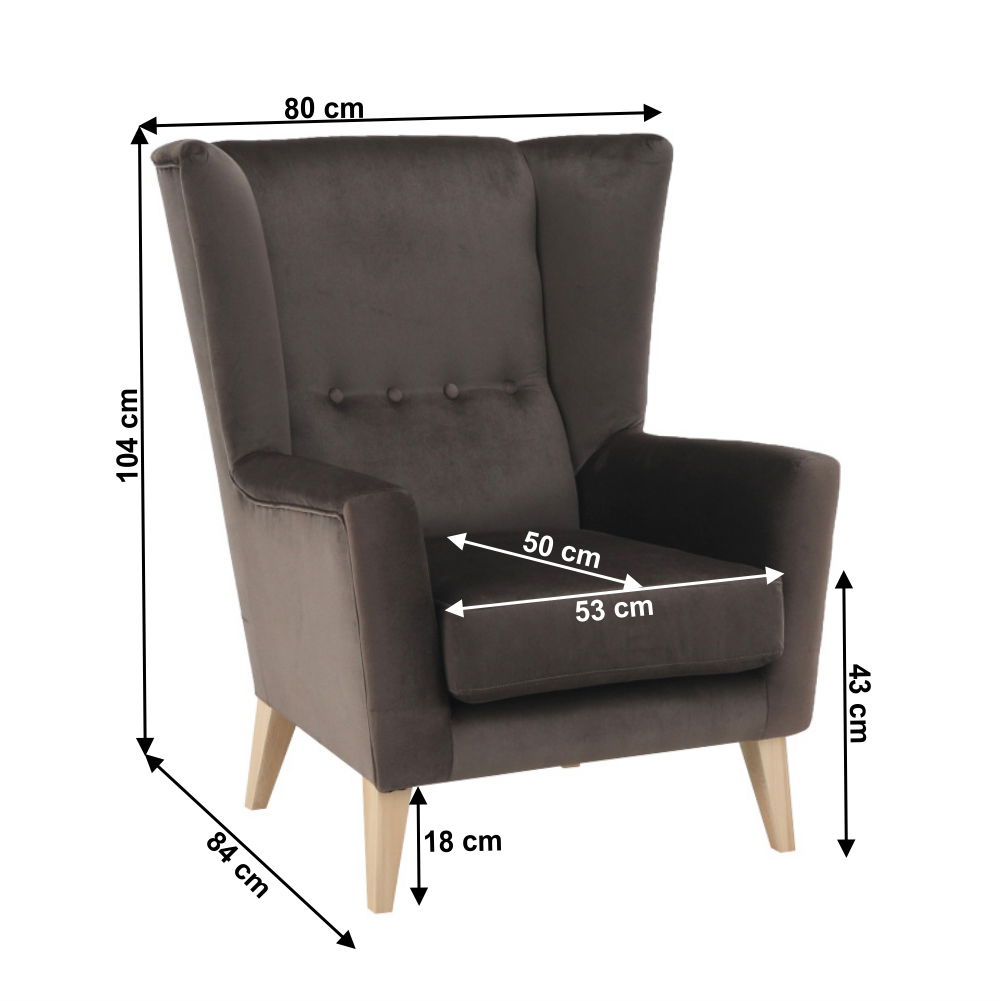 Křeslo ušák Royse Paros 04 (šedohnědá taupe + buk)